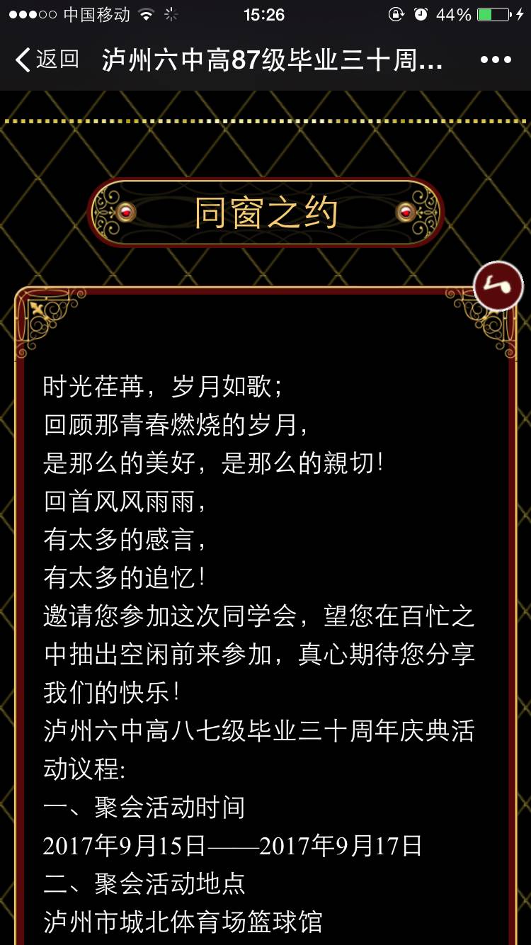 我也是87级。我们定在9月16-17日同学聚会,和你一样,我也在犹豫中。