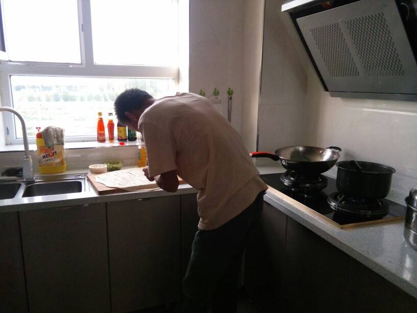因为婆婆动了手术,家里地里活没办法了,就把老公喊回来了。孩子也开学了,住进了新家,老公像变了一个人,特别勤快,做饭拖地收拾房子,我轻松了许多。脾气也变了好多,不再跟我发脾气,看看我老公做饭呢,标准的家庭妇男。