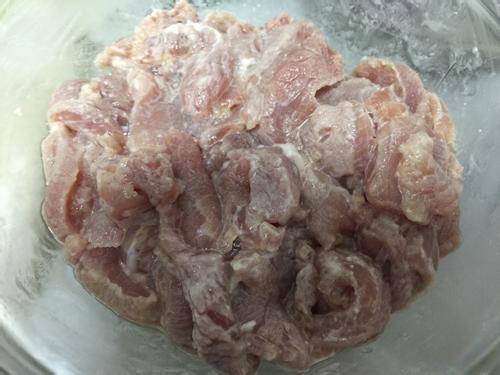 切好的肉放到碗里,加适量的地瓜粉或者淀粉,加鸡精,加生抽,这个量都是适量,对看情况来,一点盐,对了一定是生抽啊,老抽的话会咸还会让汤黑黑的