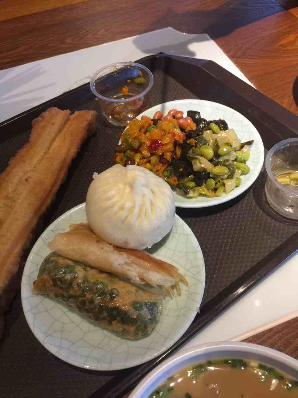 两个人,他点一堆。生病后很少喝豆浆,今天喝了点,酱油放多了,只一口,就没碰了。。