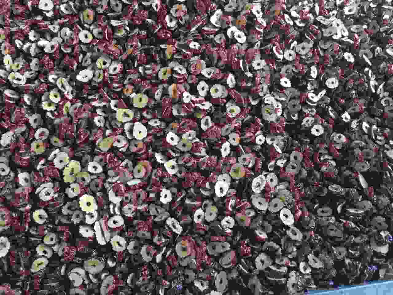 看姐姐们对我发的自己家有机红枣挺感兴趣,老公一哥们是做新疆枣圈的,看看是这样做的,你吃的是否是健康的,健康的是黑红色,打硫磺的是黄红色,枣圈在炉上