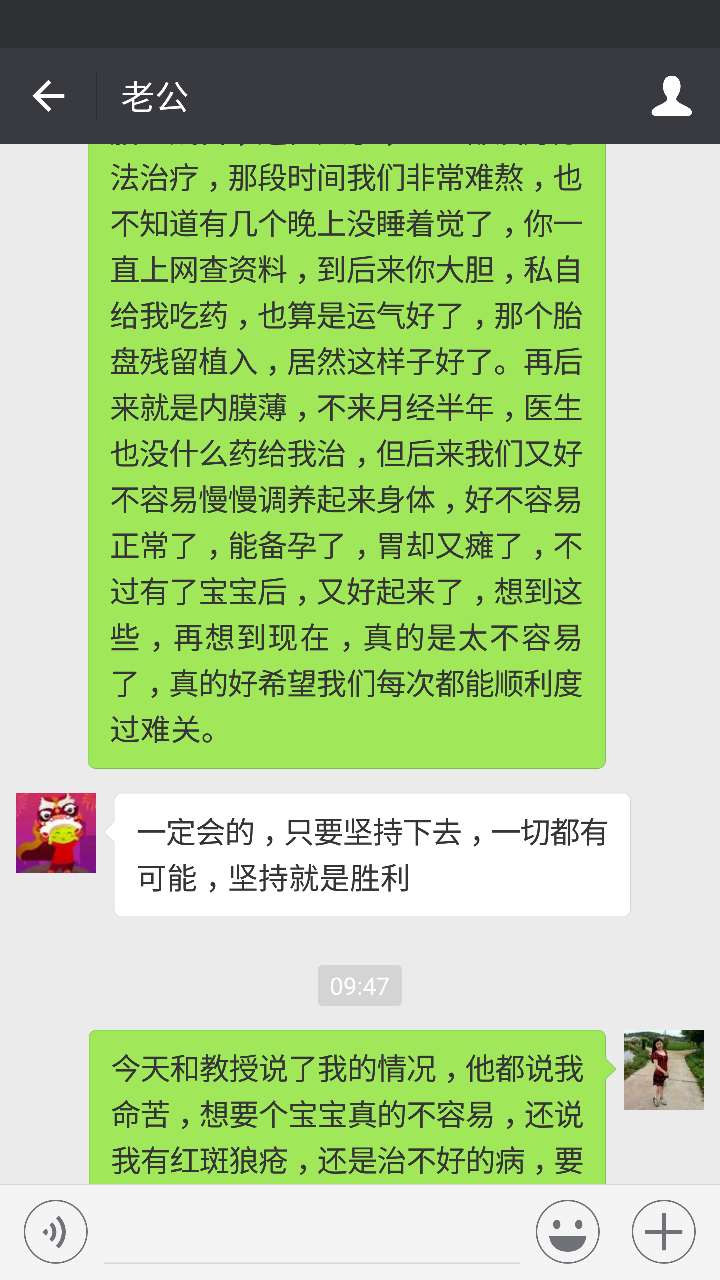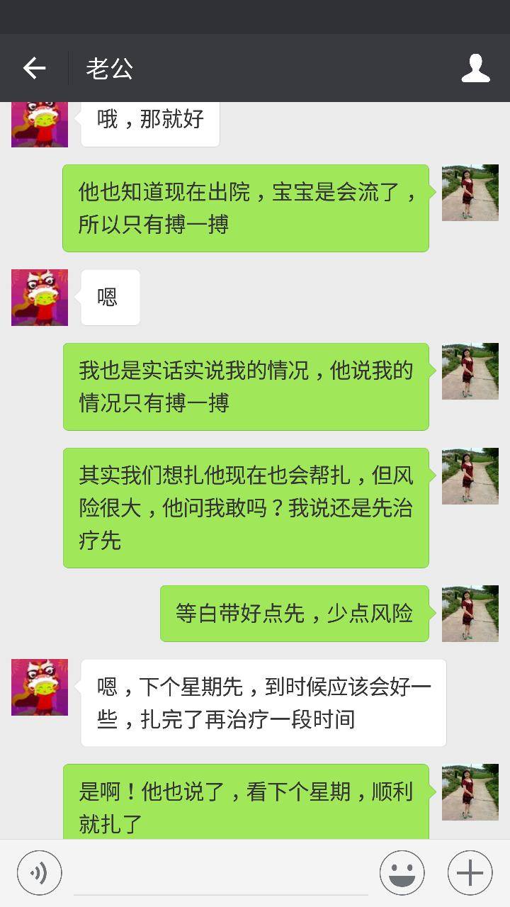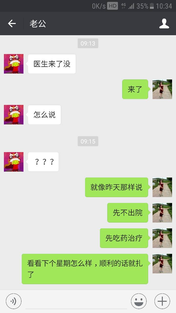 刚好那时候老公在,老公和我说,不要出院,马上就到我的危险周了,出院来来回回坐车,宝宝也很危险,而且出院了,到时候再回来这里就难了,叫我今天教授来查房的话,就说再吃药治疗先,到时候再做检查。