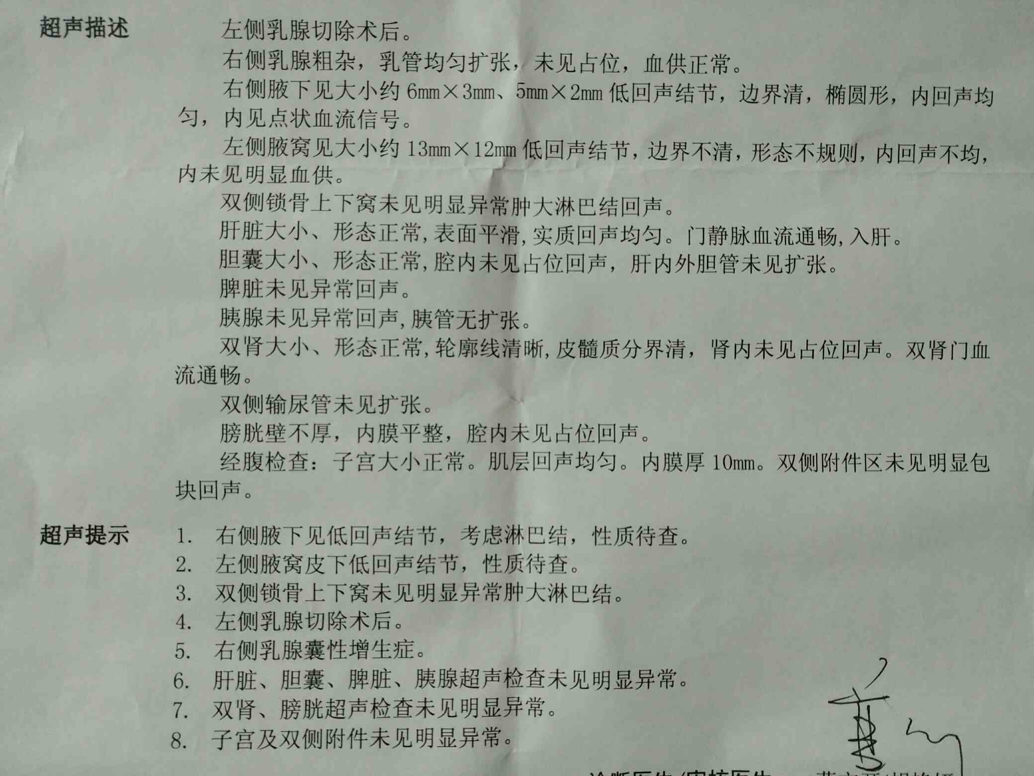 请问你的腋下结节怎么处理的
