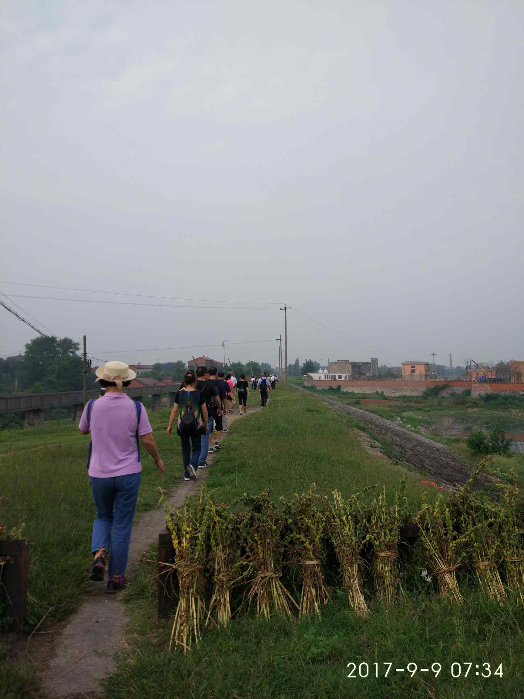 周六参加向幸福出发老年徒步队,体验早秋的自然美,人员25,距离超17公里,手机有微信.咕咚.