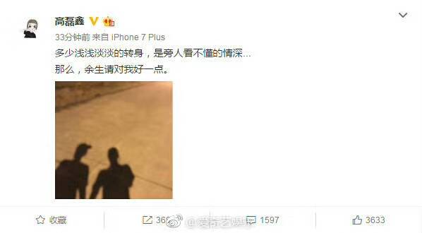 就在同一时刻,高磊鑫的微博印证了这条消息,并发了同一张牵手照。