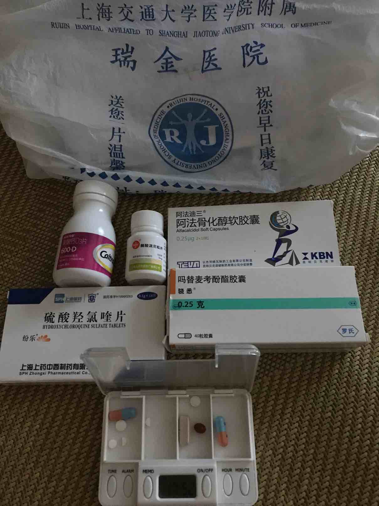 今天去医院复查,现在是2个月复查一次,前天验了血和尿,全部挺正常,激素今天开始由2颗减了半颗,现在吃一颗半,其他药不变!每次去医院,药都开不齐,才开20天的量,让多开到也不肯,去趟医院要和单位请假,要坐好久的公交车,还要转地铁,累死了!看个病连开个药也这么不容易,什么时候才能减晓悉啊,好贵啊~