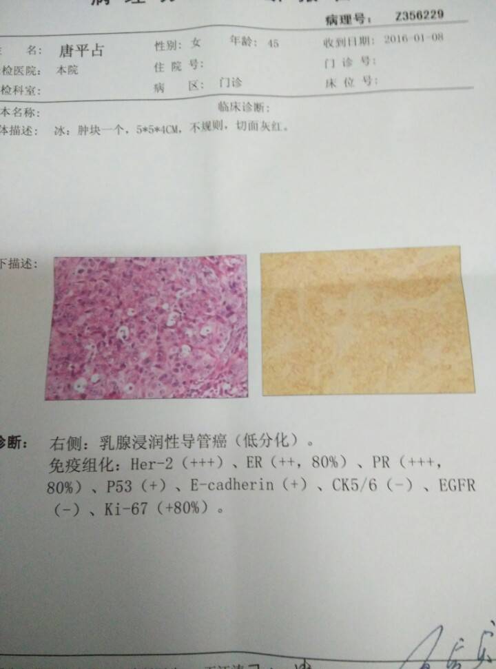 好久没和姐妹们问好了,想你们了,我发的【选择】还获奖三等奖,全都要靠大家的支持,感到受宠若惊,对不住大家,写不出好文章来还获奖,我只是告诉我的治疗经验,谢谢你们!我说我的是三阳三期,放弃靶向,看到小沫发的可以申请国内的新药赫赛汀,不知可不可以,我已经治疗结束一年一个月了,姐妹们你们给我拿定主意看看,我又怕好麻烦,谢谢大家啦!我的免疫组化给你们看看