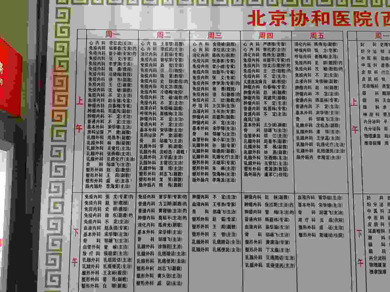 协和医生出诊表,有需要的自己查询
