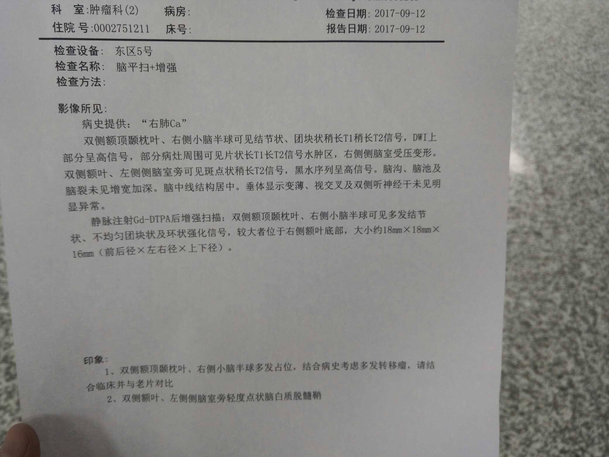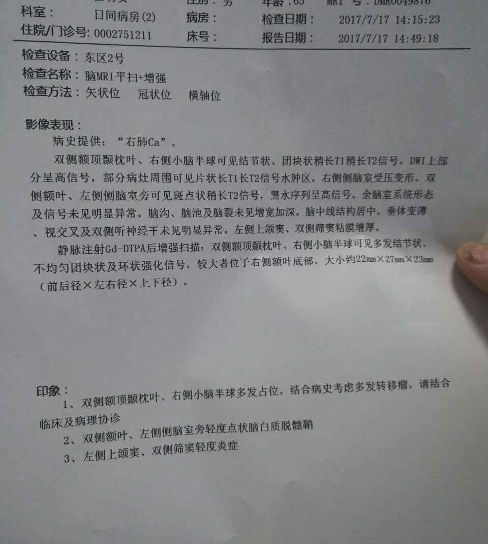 右额叶底部那个明显缩小了,就是分不清是化疗还是804的效果,总之有效,恭喜恭喜