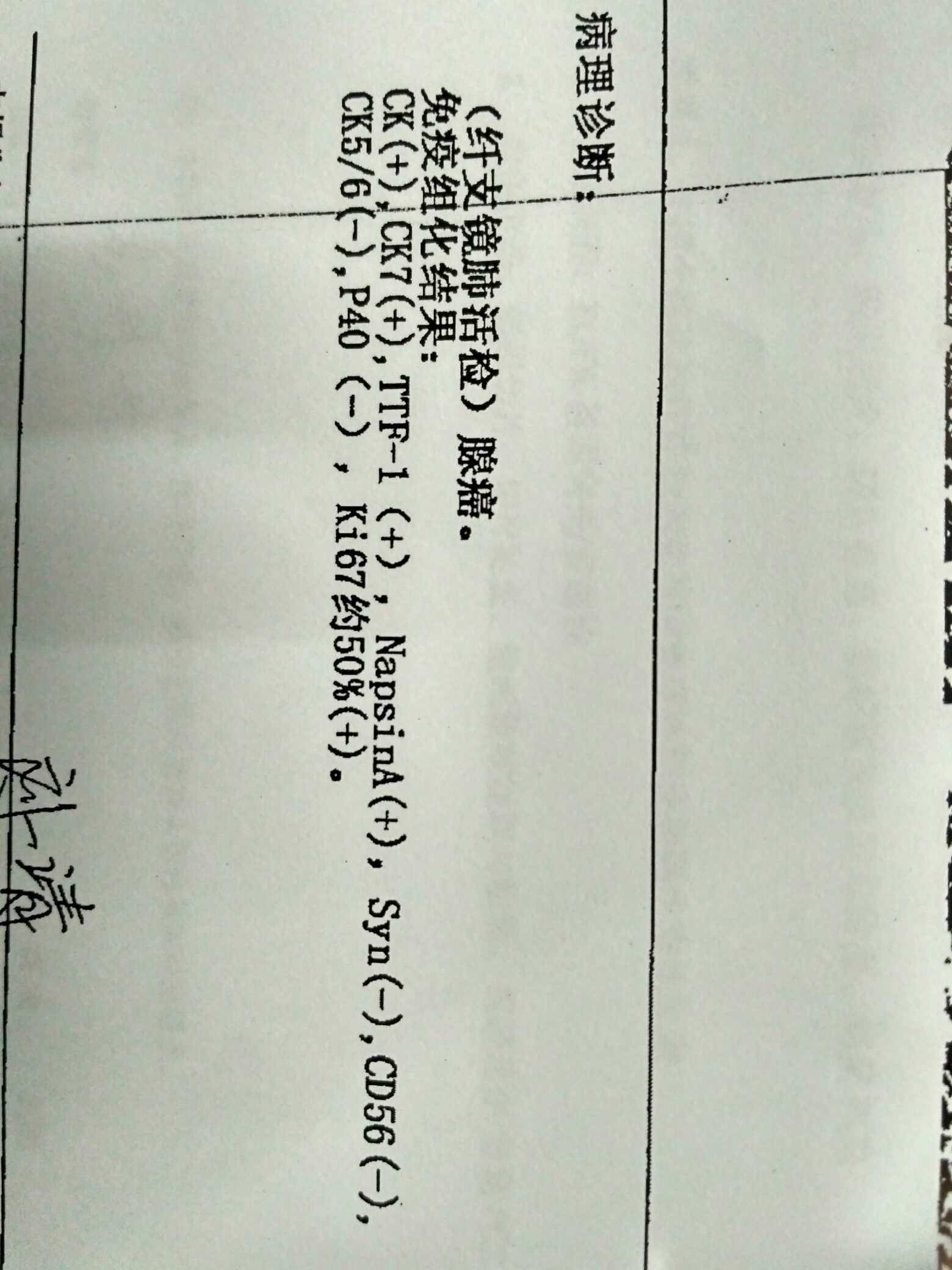 这个免疫组化是用来确定是什么类型的癌,就是根据这些阴阳来确定是腺癌,腺癌可以考虑吃靶向药。