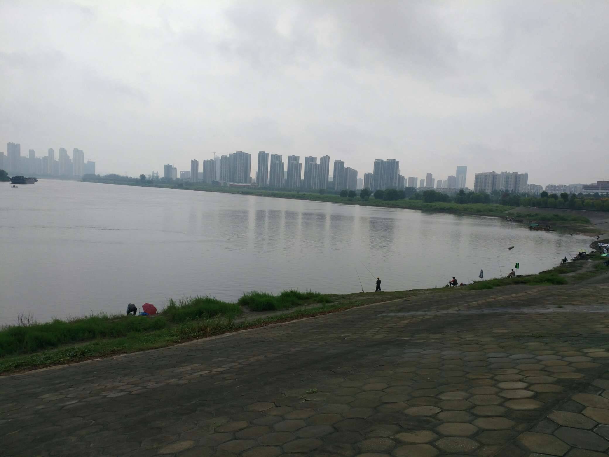今天在麻纷雨中散步,空气好,人少。河里仍可看到坚持游泳的人。河边可看到垂钓者。细雨微风中,人的心境异常的平静。让我常常觉得养病就是养心,心平静了,身体也舒坦了。