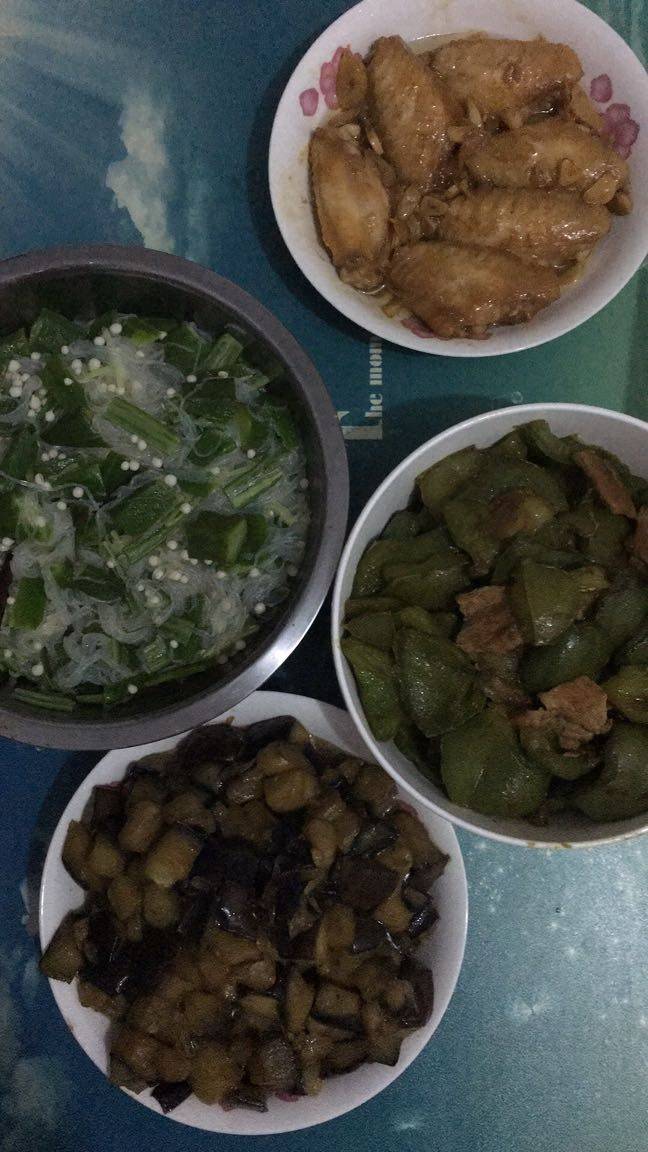 先祝自己生日快乐,老公请假一个半小时提前回来给我做的蛋糕把我惊了一下,味道超级赞的,他第一次做居然这么成功,我做过很多次都失败了,前两天无意中说想吃鸡翅了,哥就给做了个鸡翅……我们做了一桌菜,味道都是棒棒哒……