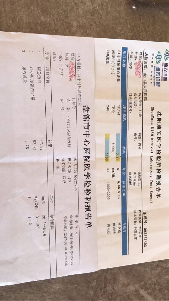 ,我一共送了2家医院化验,就是怕不准确,另一家的得再送化验,所以得等到周一才能取结果,结果出来要是一样的话,我就得去沈阳大医院去检查了,我们这的中心医院 大夫都不敢给用药