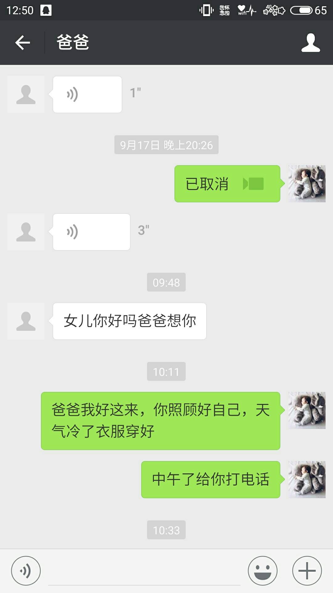爸爸学会用微信给我的第一条消息 ,满满的幸福但跟多的是心酸