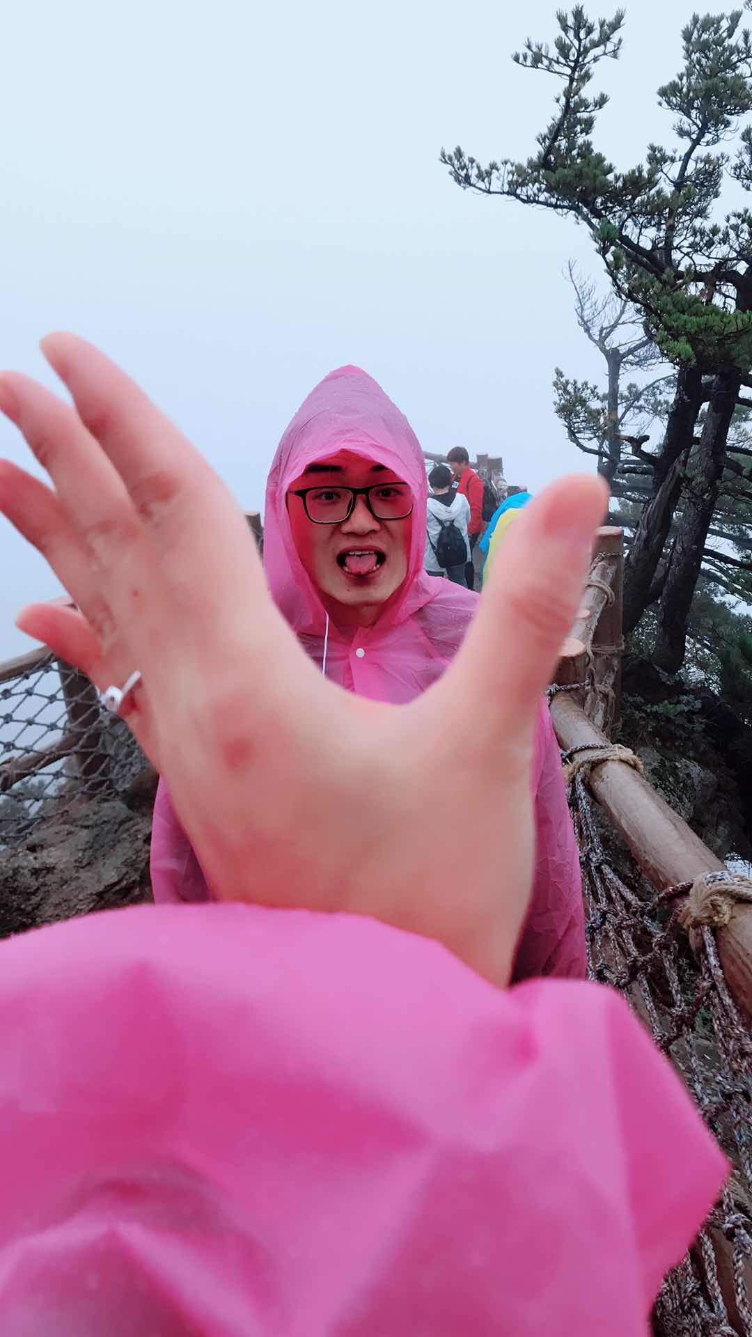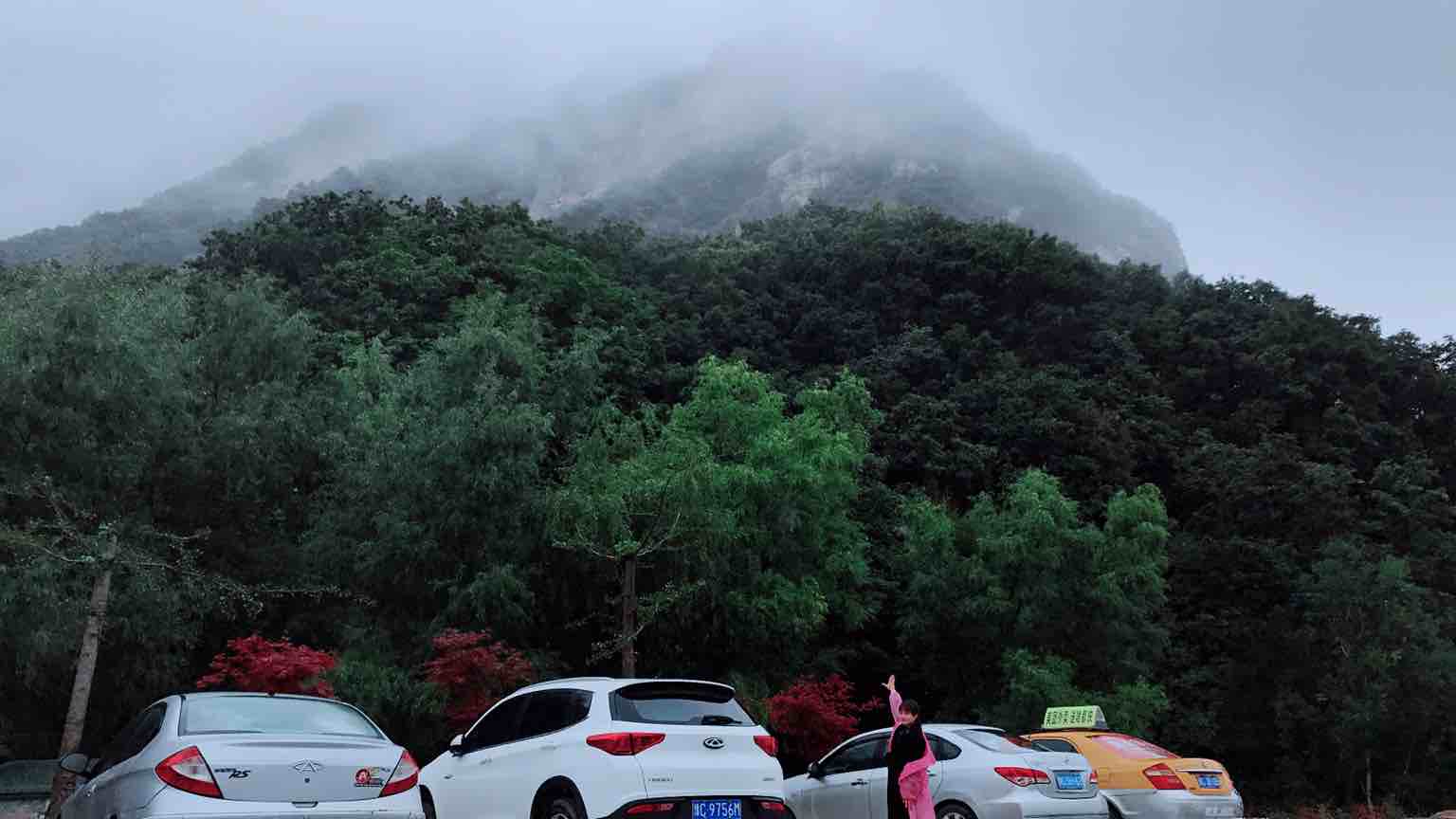 本打算好的去玉皇顶看日出,但下雨了,不过雨中的白云山更是别有一番韵味。两人披着雨衣漫步细雨中,有一种谈恋爱的感觉