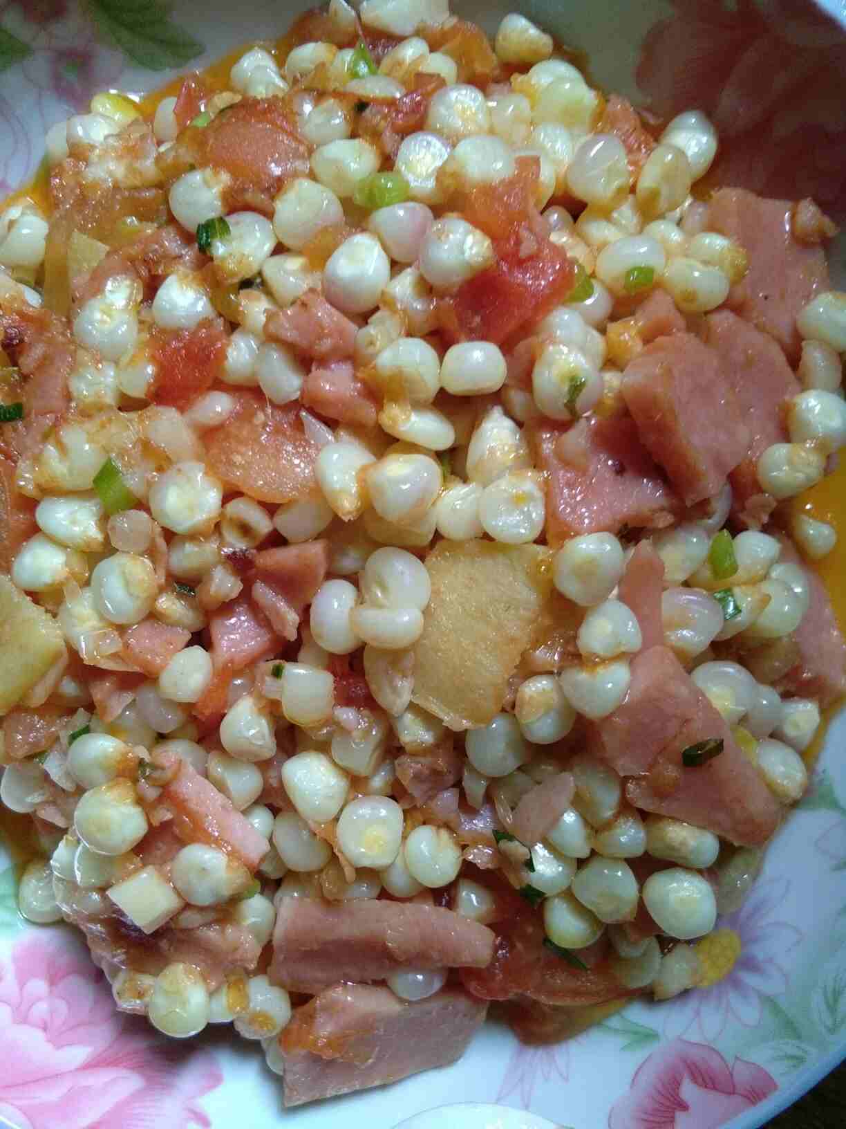 炒玉米,青菜萝卜丝