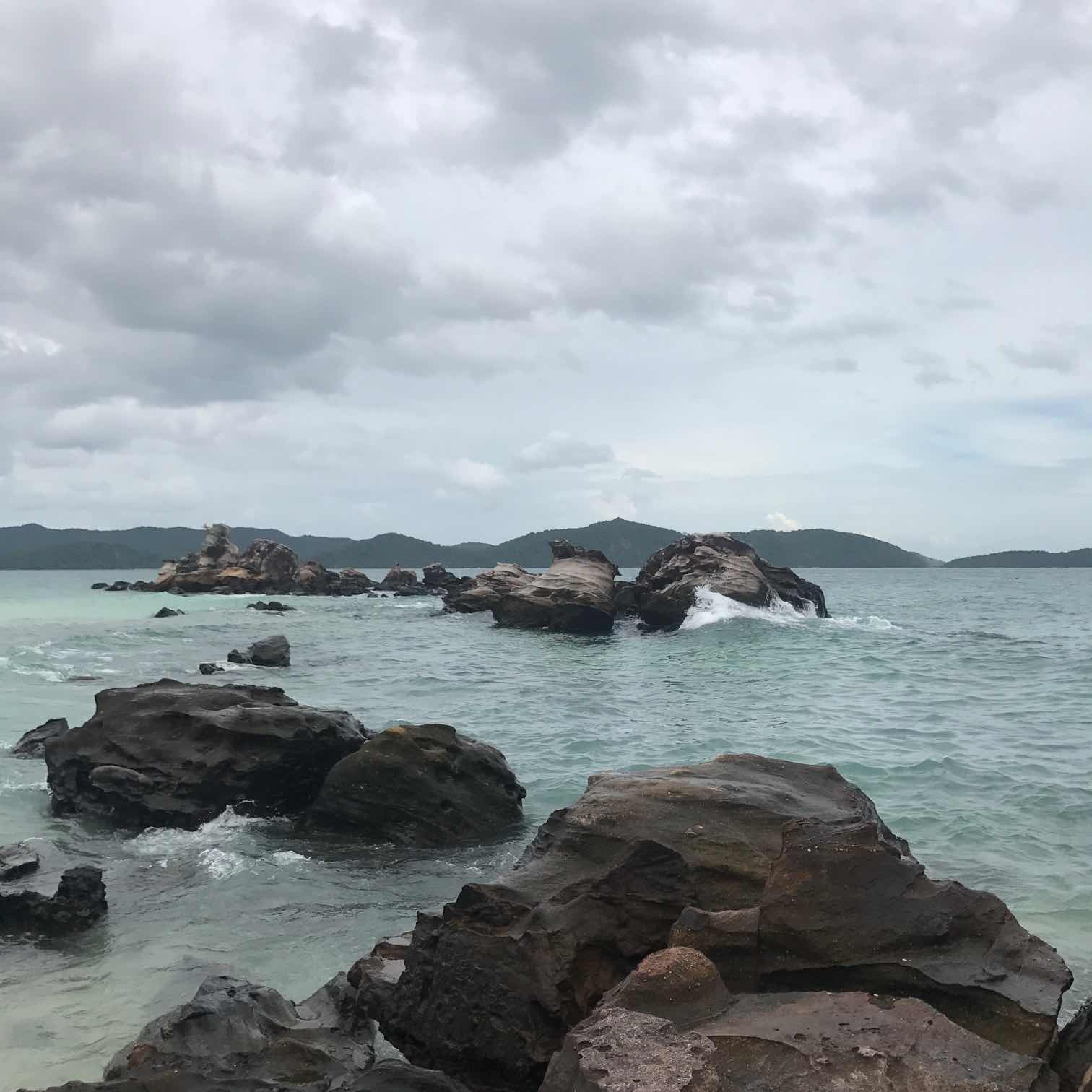 经不住诱惑还是跳了水!哇哈哈哈!开心开心!在海里遇到下暴雨,也见了大晴天!真的心胸宽广!