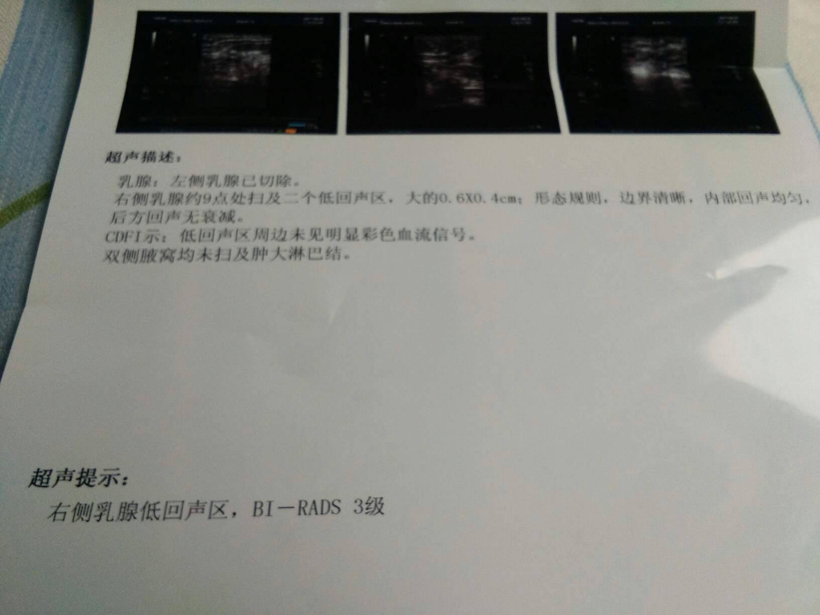 我右侧手术前做三维彩超左侧就有一个你这么大的结节,我跟大夫说想两侧全切,大夫说左侧没问题,定期复查就行,所以左侧没切