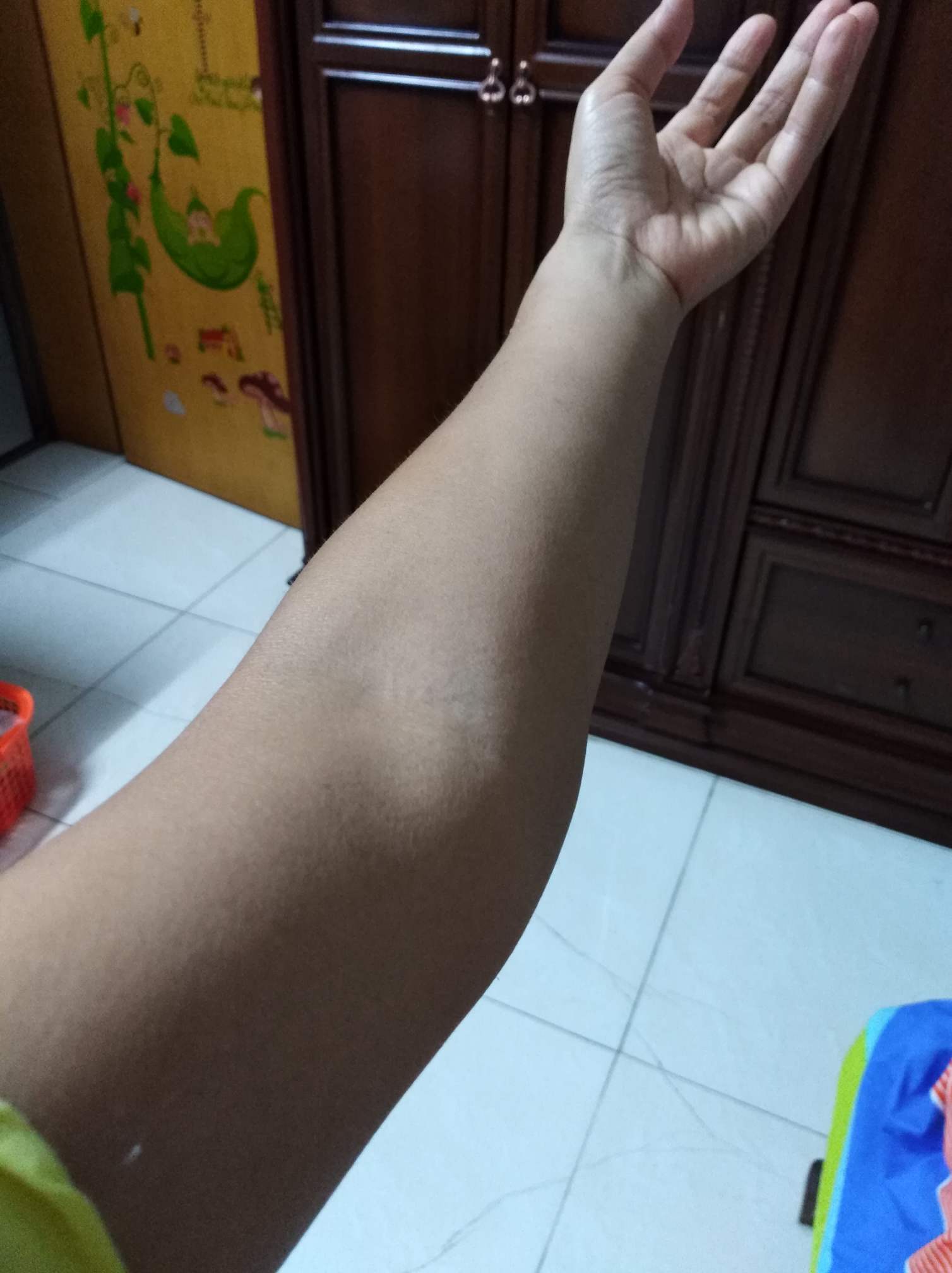 你胳膊肘窝那里鼓小包了啊!我也曾经这样过,那时候上班上早了,累的。你买个弹力套袖吧,戴上十天就好了。平时把胳膊抬高,睡觉也抬高,没事就按摩,从手指向肩膀方向,轻轻捋捋。早期应该能恢复,我当时十天就恢复了。