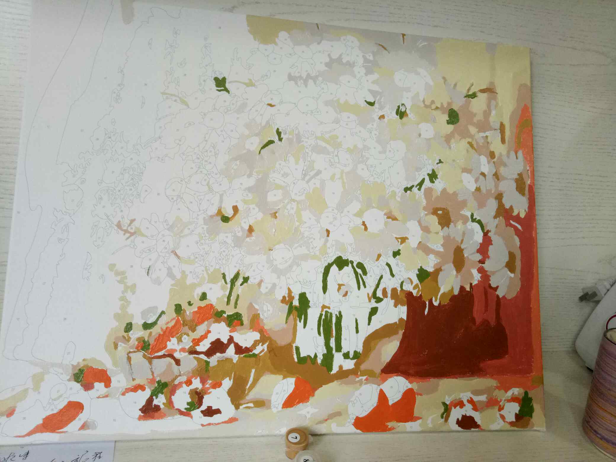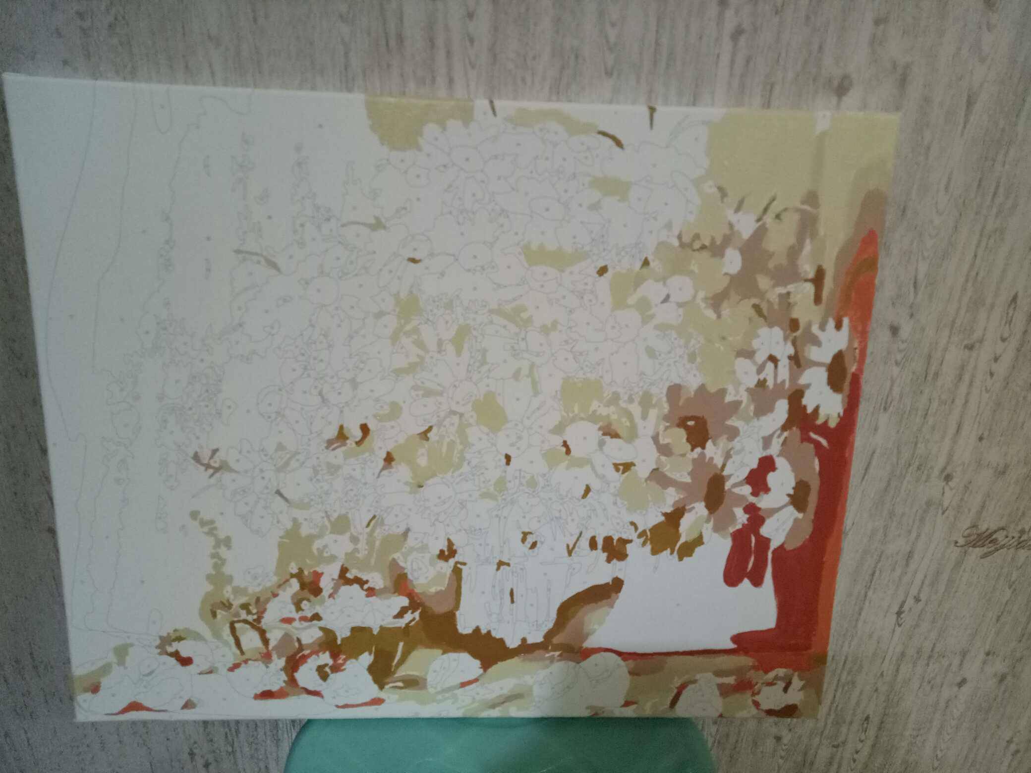 等待放疗的日子,身体恢复了,不想每天都吃吃睡睡走走,偶然间听说有数字油画,兴趣大增,买回来后每天花一点时间画几笔,出去走走回来又画一点,听着音乐,涂抹缤纷色彩,心情愉快,内心充实。