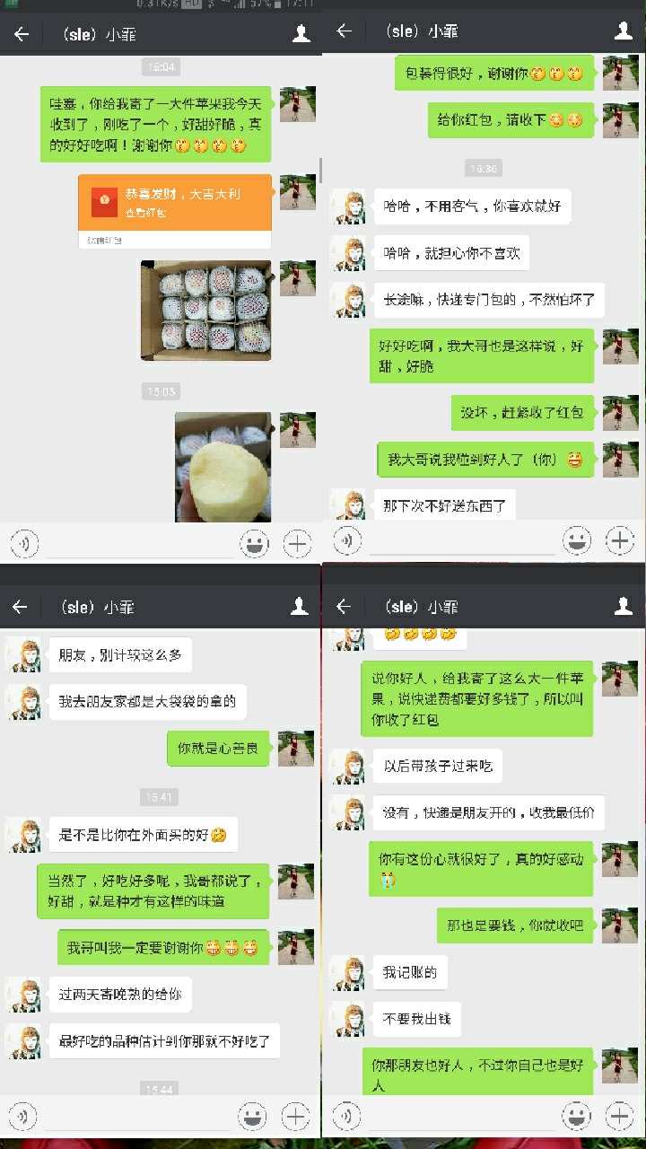 大哥说一定要谢谢人家,那么大一箱苹果,要是买真的不少钱呢,而且还要快递这么远过来!确定是,可是我给霏霏红包了,她没要!