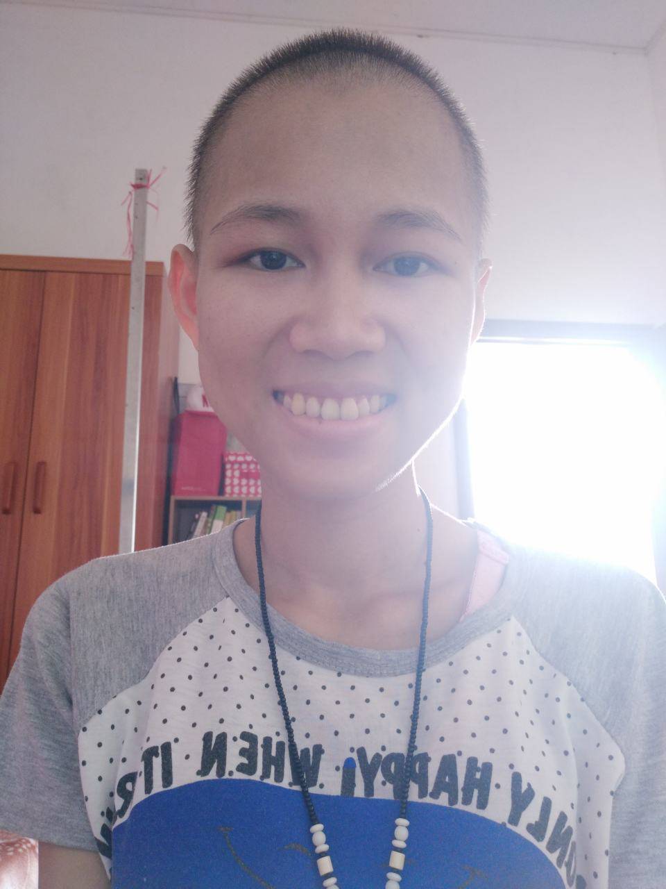 我也想剃光头的,但我脸型太刚硬,唇毛还长,再没头发就像个男人了。