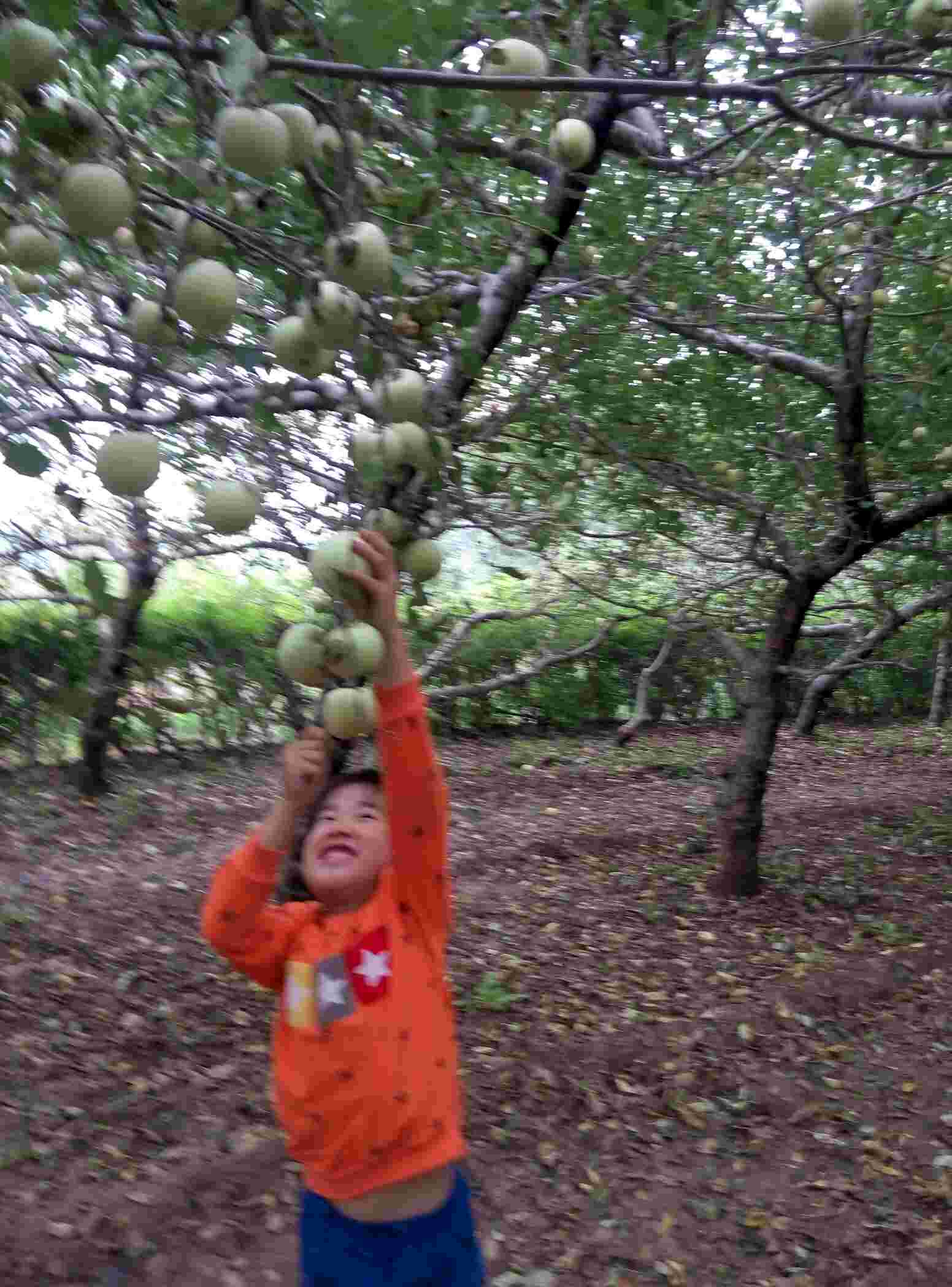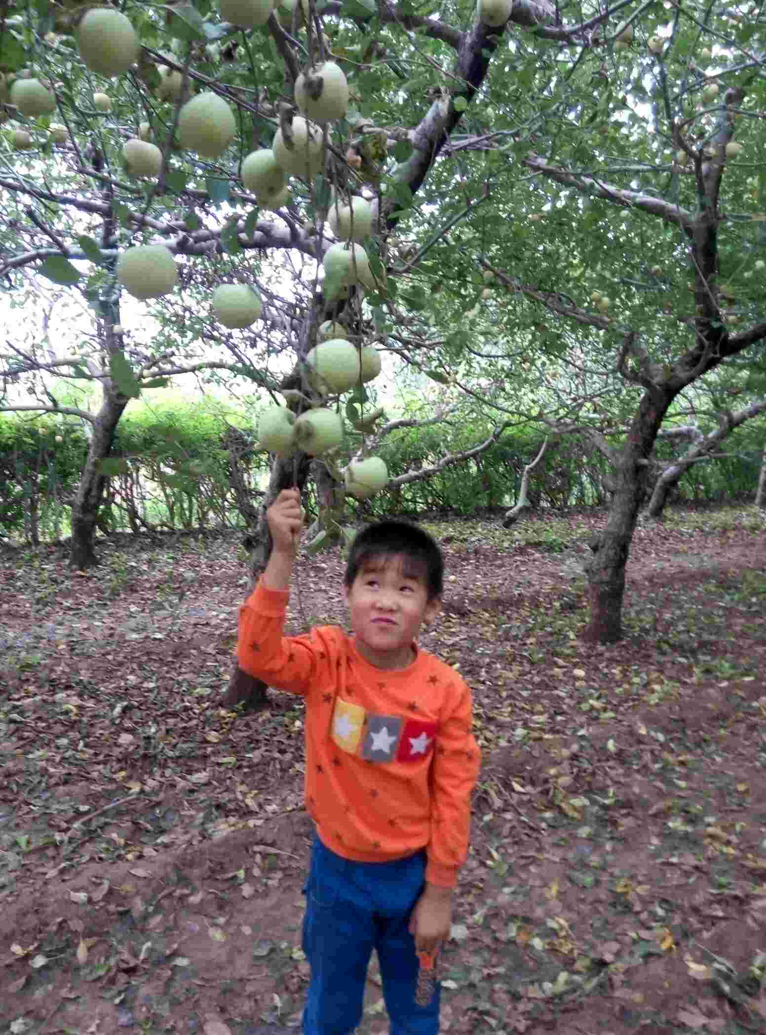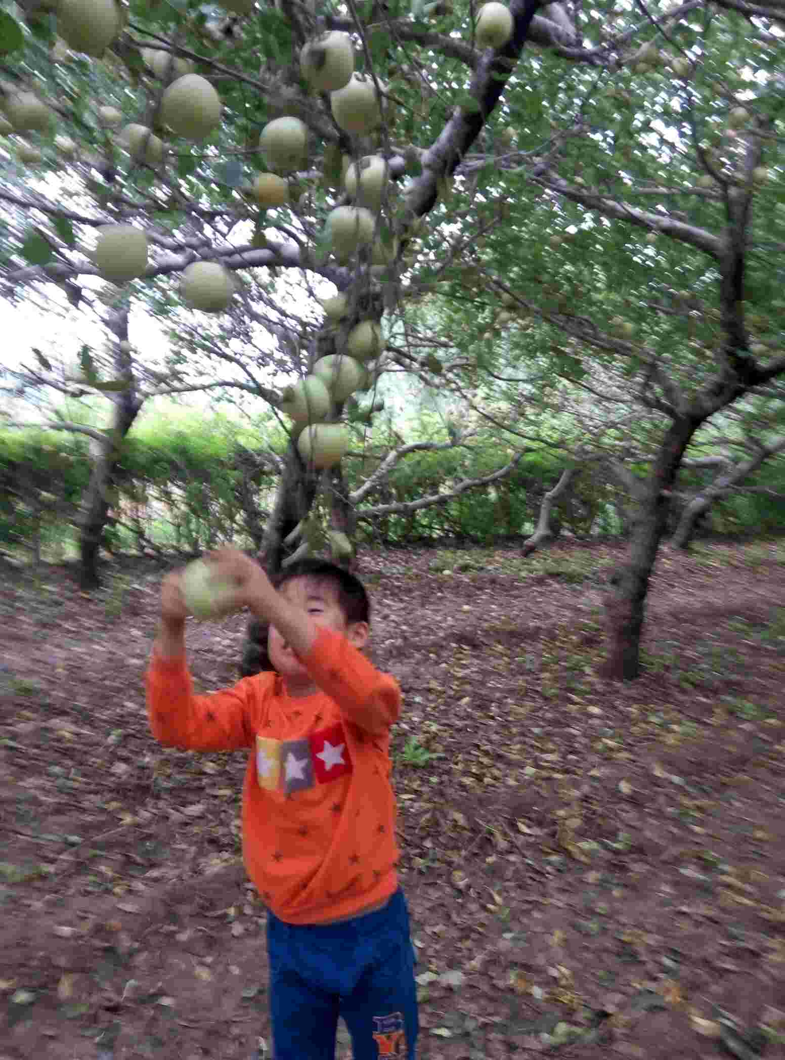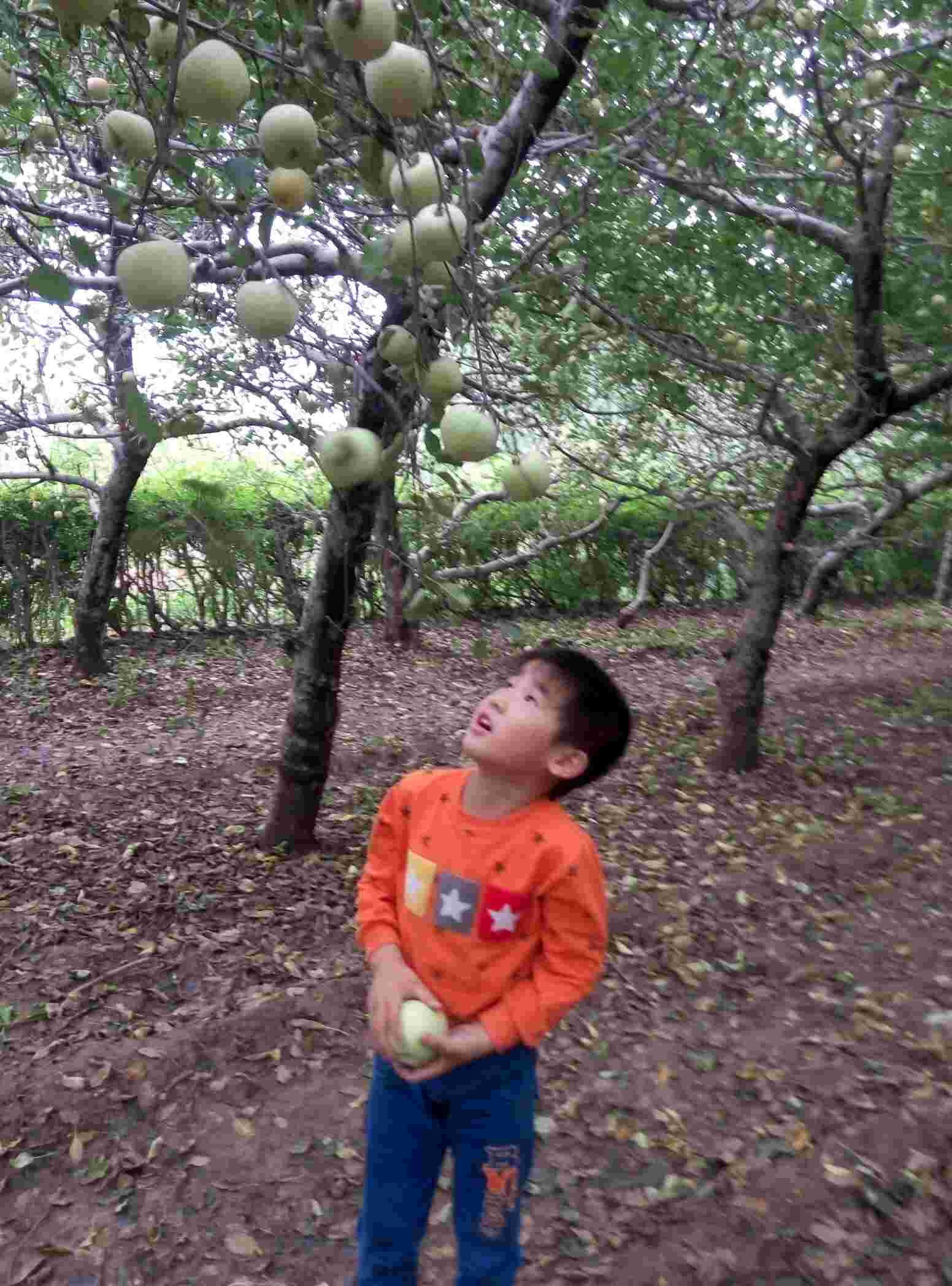 我家有苹果园,哈哈,这时候苹果还没红了。
