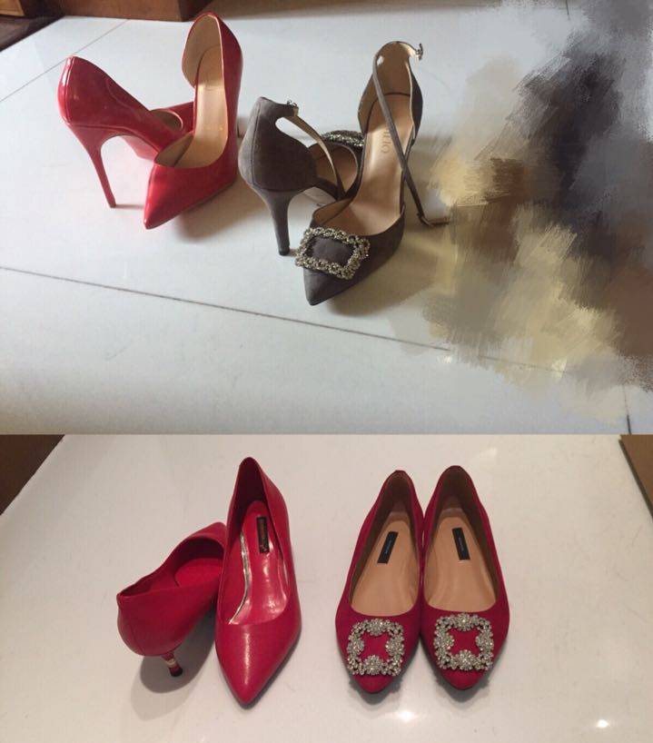 今天下午和婚庆工作人员约好去酒店看了场地,差不多设计好了方案,敲定了价格,晚饭后和妈妈去商场买了婚鞋,自己买的11公分被嫌弃太高、会累、不安全,坚决不给穿,然后妈妈又给买了两双,高度经过爸爸认可,一双平底,一双3公分