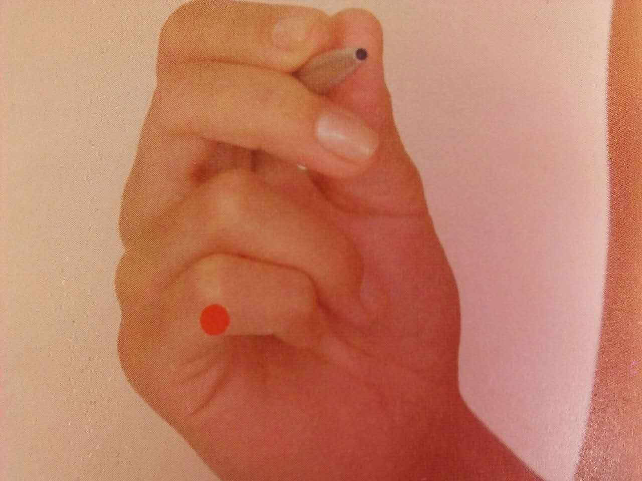 今天分享缓解晕针的处理小妙招。晕针的患者是每个针灸医生都会遇到的。那么遇到晕针的情况,不要紧张,让晕针者躺下喝点水,平复一下心情,一会儿就好了。或者我们可以用手指或牙签压制图上的红点位置,提前按压或者症状一开始就按压,效果会更好。