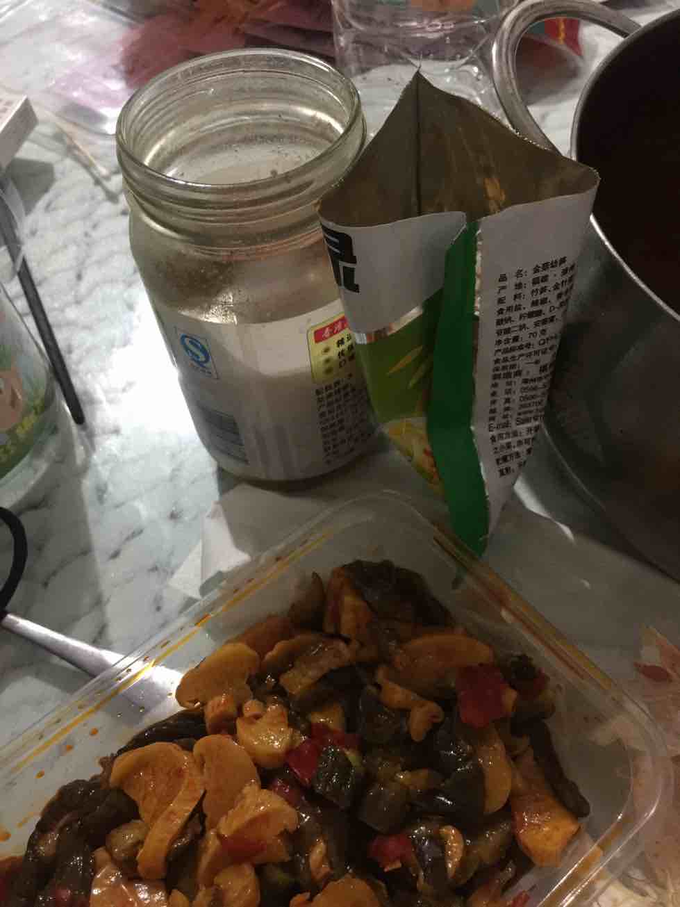 一个人吃饭,豆腐乳,酱瓜,加包装菜。。