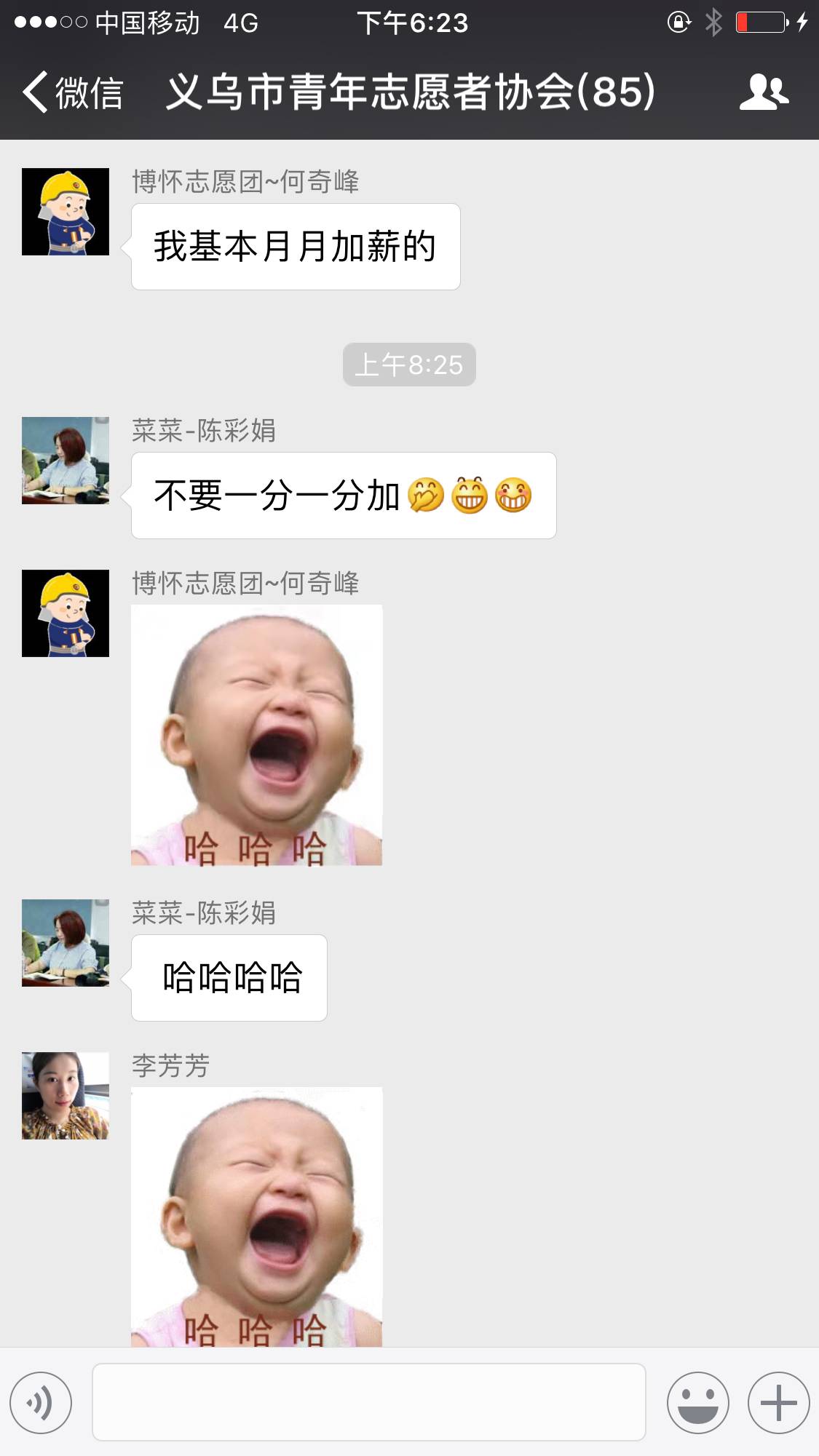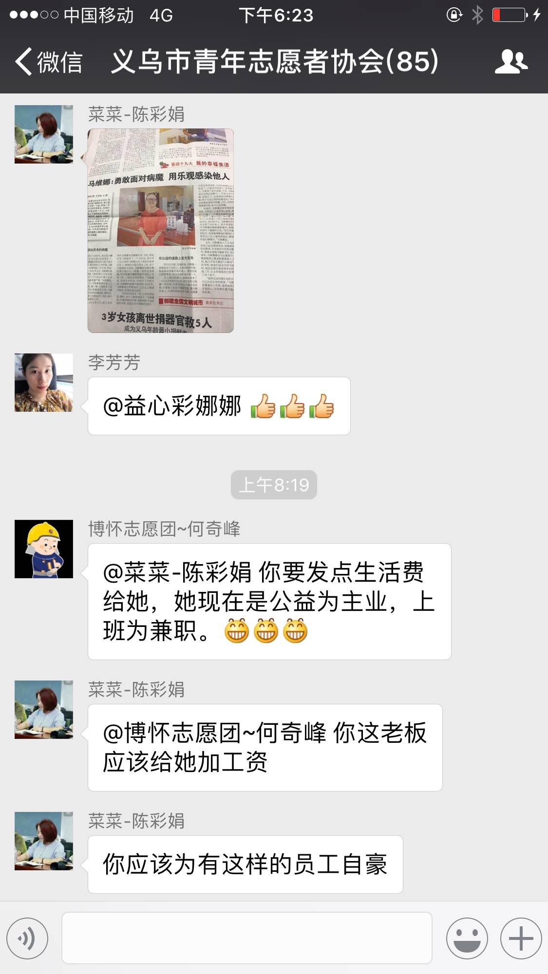 今天一早,发现在公益群里,逗逼老板与领导们的谈话。领导要他给我加工资,他要领导发。随后,老板发了朋友圈