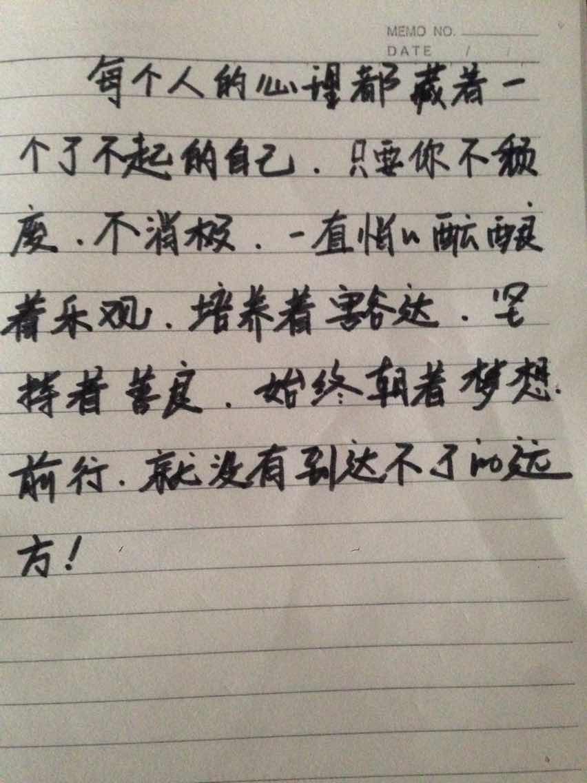 每个人的心里,都藏着一个了不起的自己。只要你不颓废,不消极,一直悄悄酝酿着乐观,培养着豁达,坚持着善良,始终朝着梦想前行,就没有到达不了的远方!