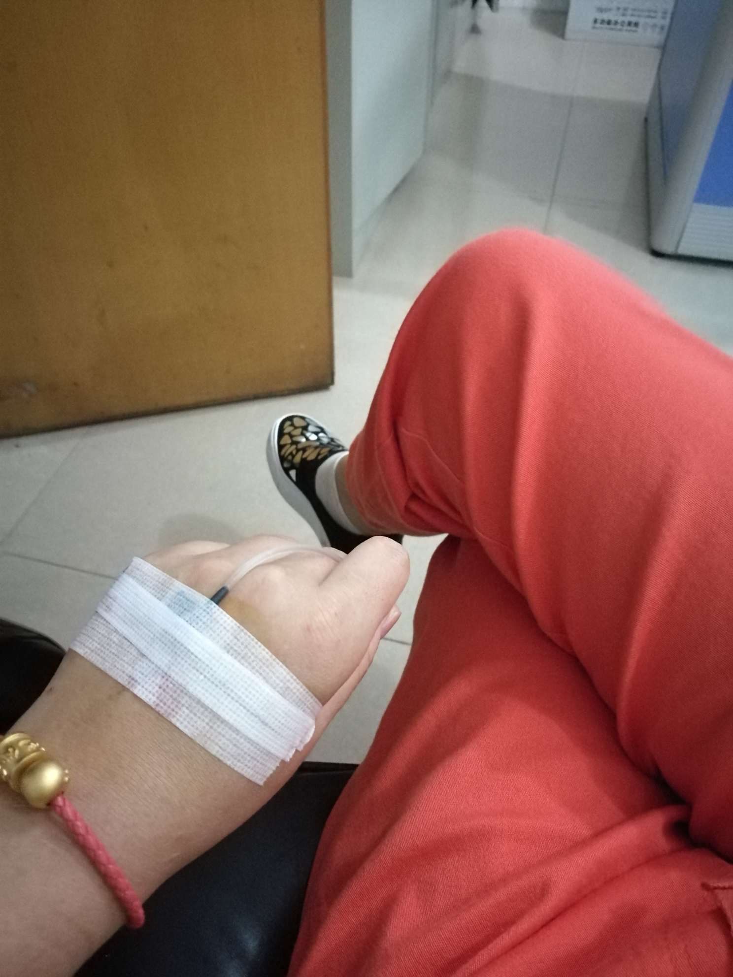 五点钟才拿到药,五点半下班,下班后赶紧在办公室自己给自己吊起来,我也是蛮猛的,右手打左手