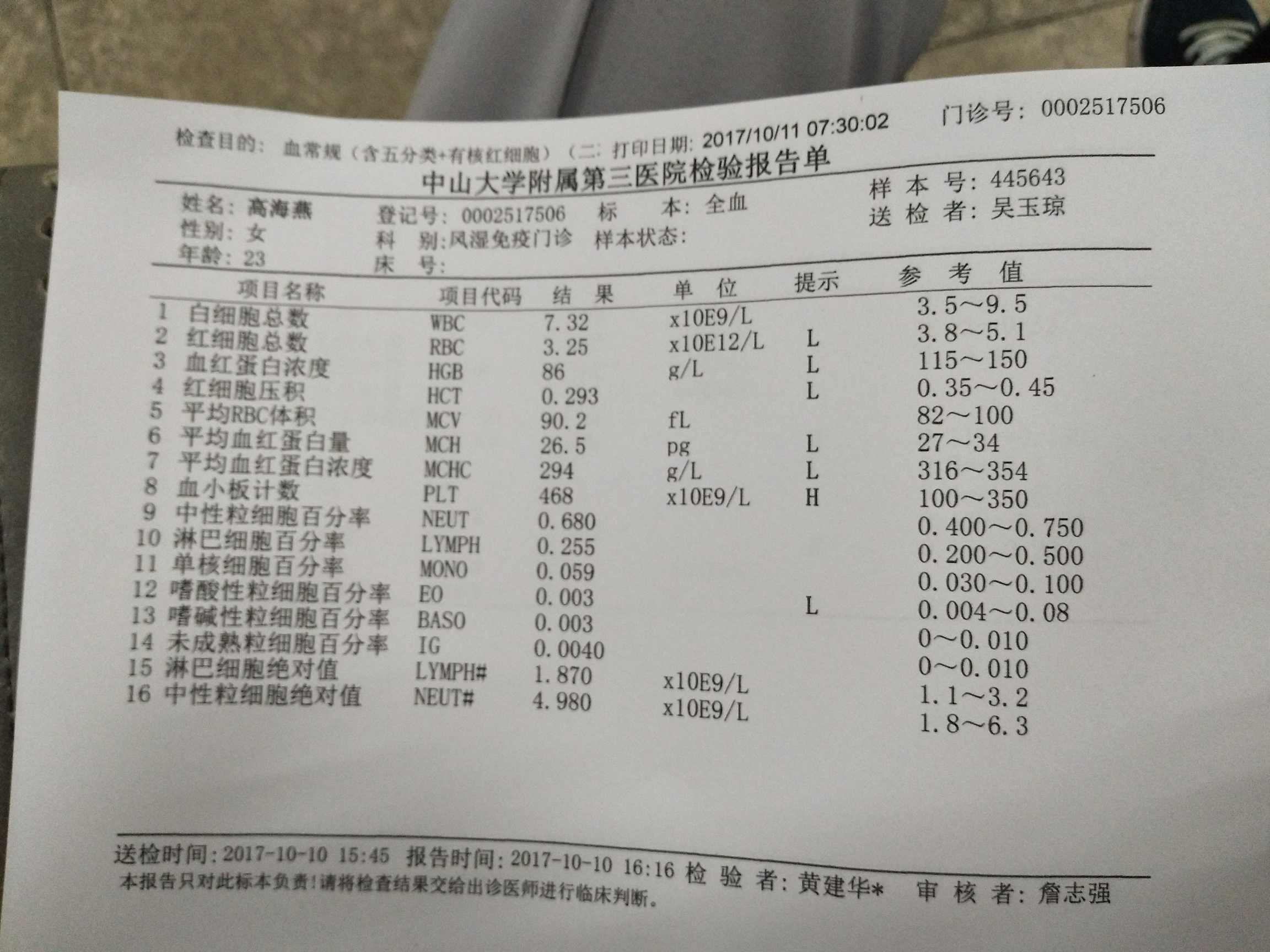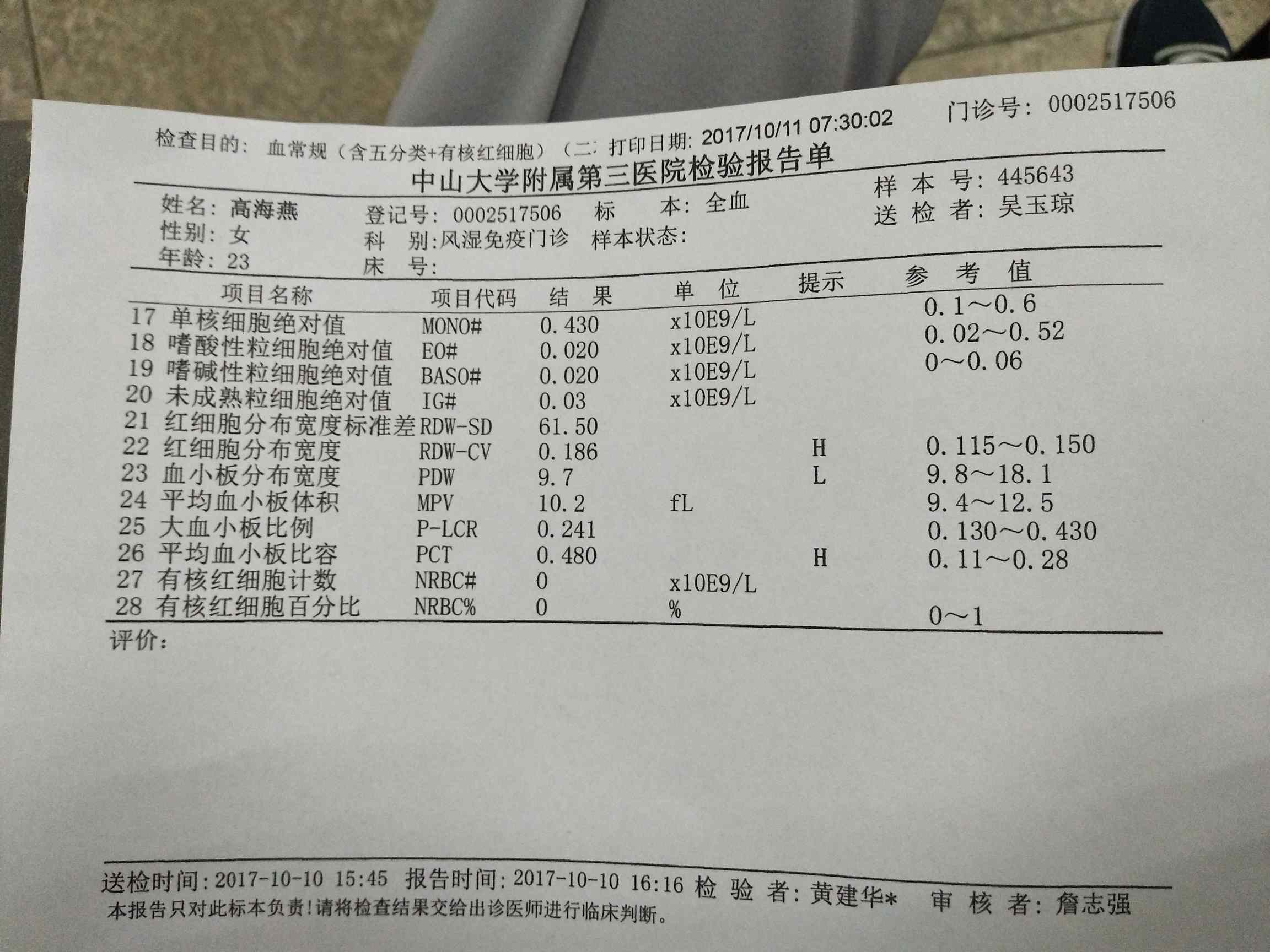 羡慕这个血常规啊