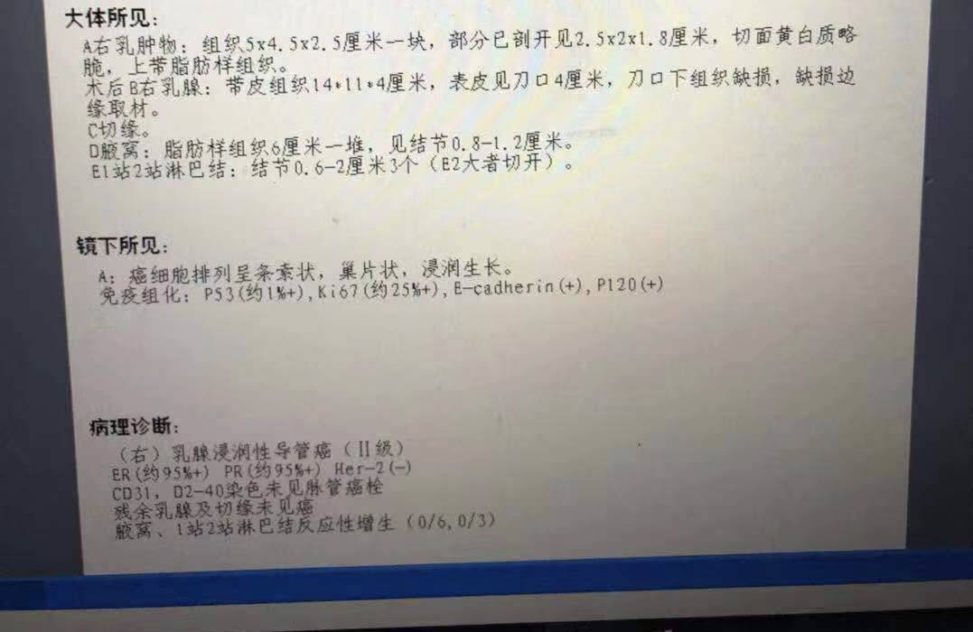 这个病理很好呀~~LUMINAL A型,预后最好的分型了~~~