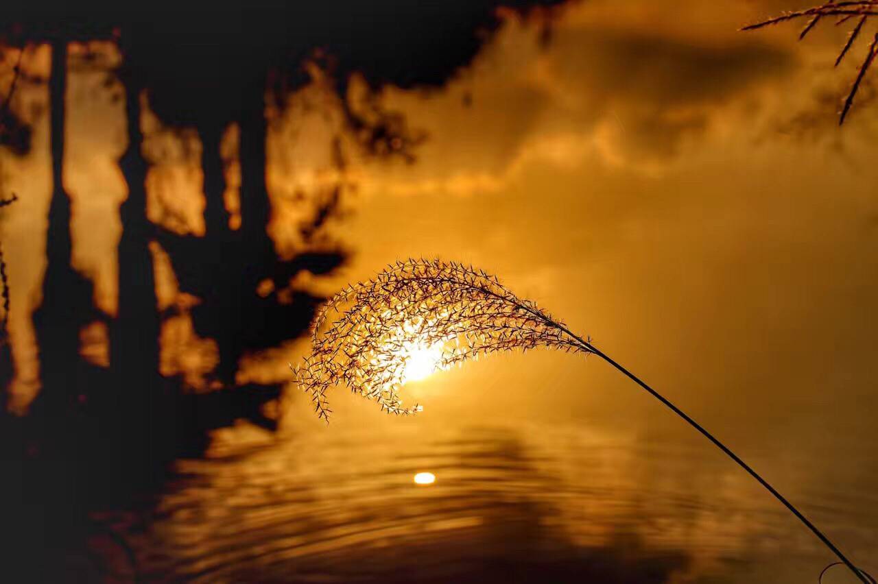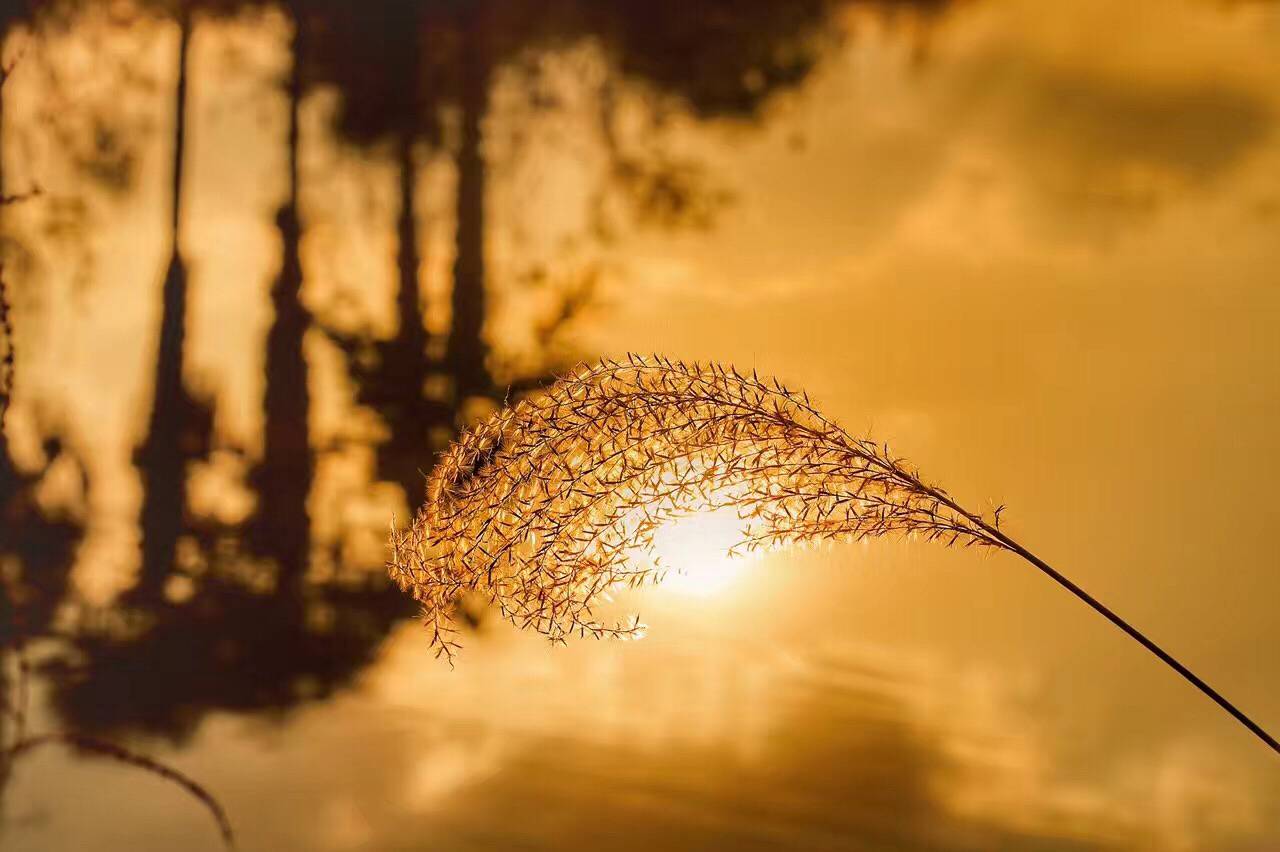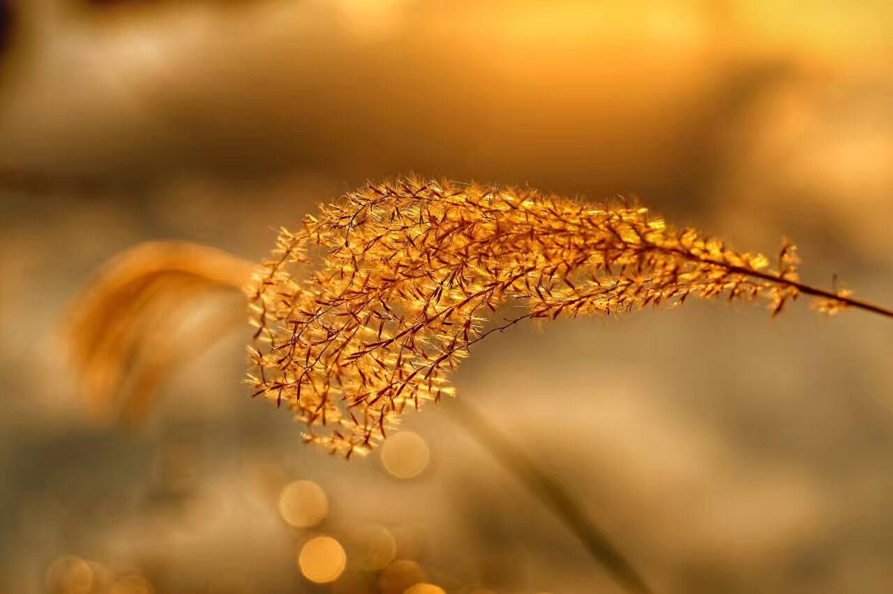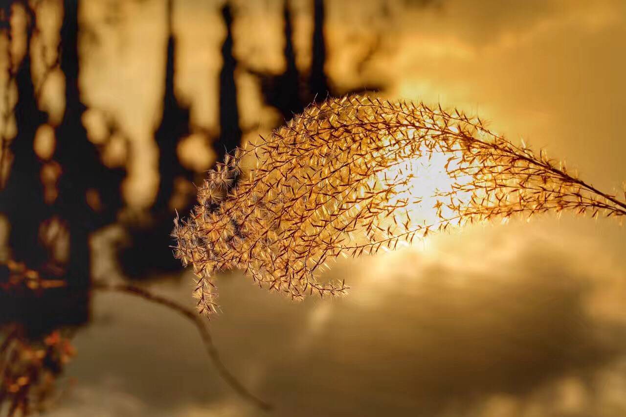 漫步日暮的植物园,夕阳下的一株芦苇煞是好看~