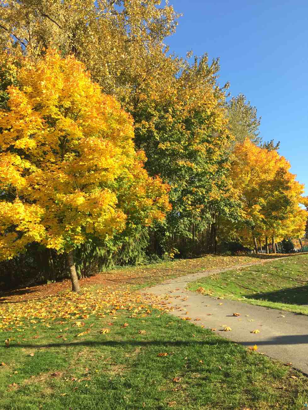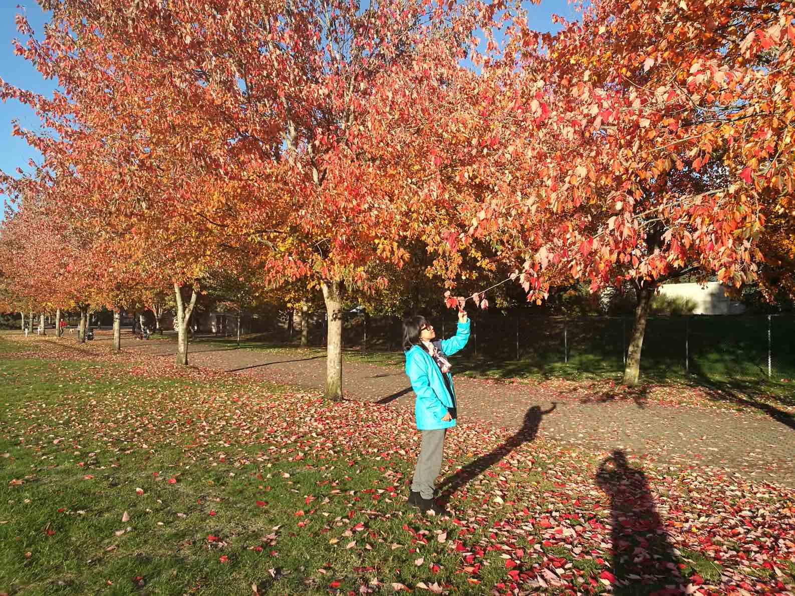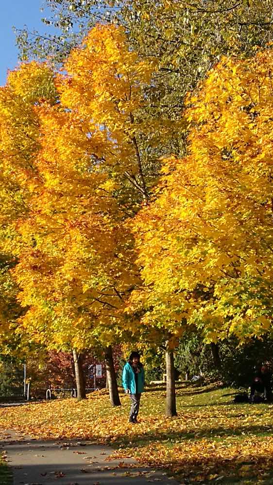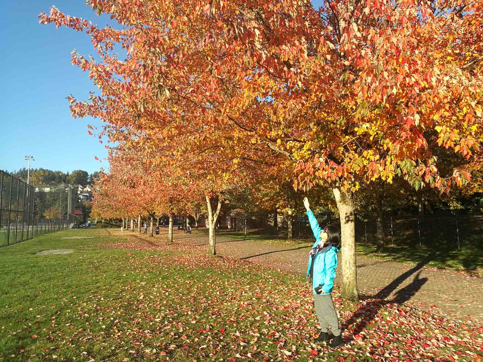 温哥华又连续下了二天雨,今天上午还迷雾朦朦,中午就开始艳阳高照了。先生劝说着带我出去稍稍走走,以便慢慢恢复体力,必竟经历了一次长达8个小时的大手术后不久又接着10小时的飞机旅途。并应梅花的要求,把我也拍进了画面里。