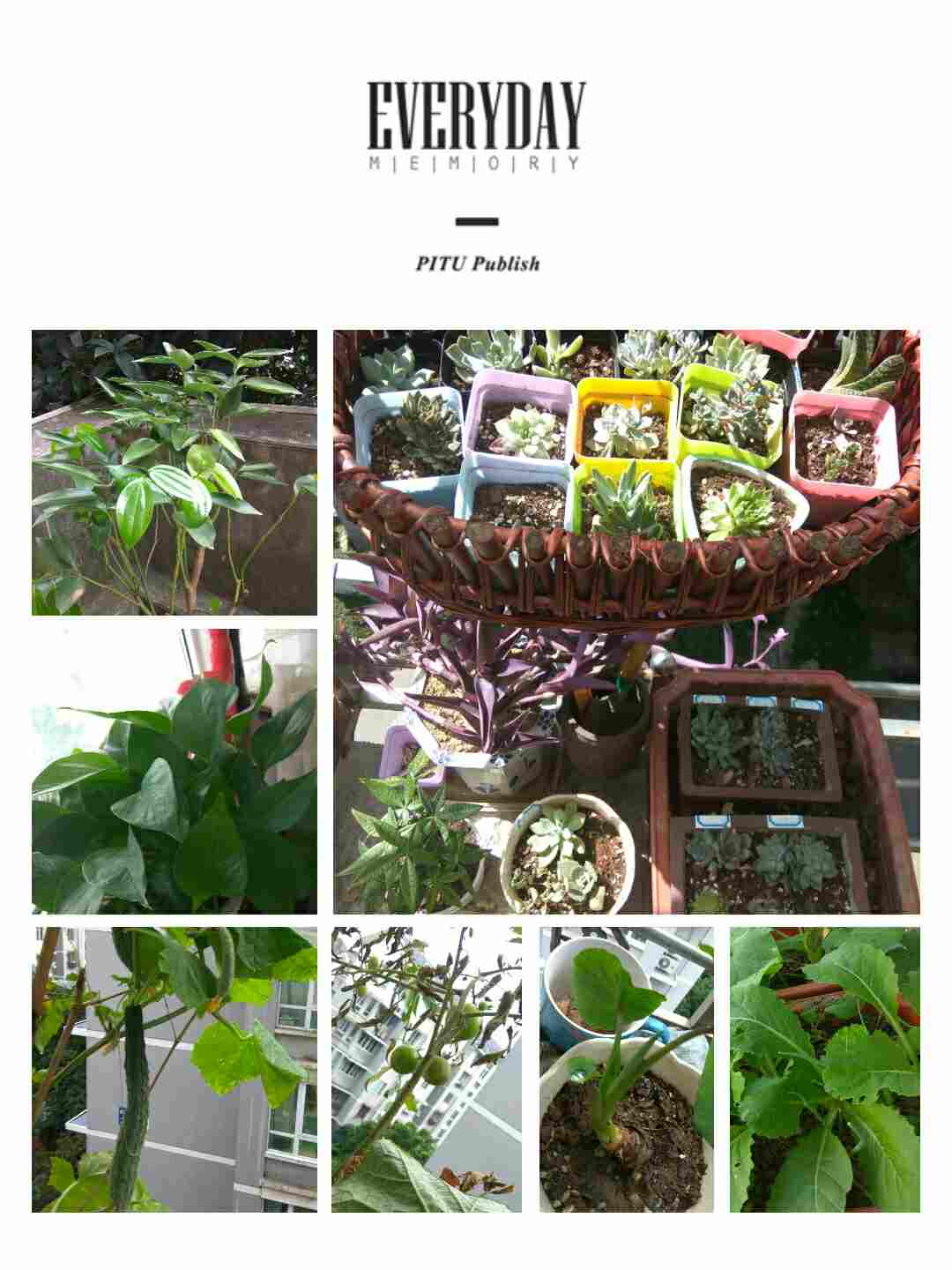 痛定思痛,调整好心态,找到绿植们的生长规律后继续精心照料着他们。惊喜却也在不经意中再次来临!在一个美丽的清晨,我意外发现了一个枝头上有一颗黄瓜宝宝,而我的发财树竟然重新抽出了嫩绿的新叶片,还有我的西红柿也开花了,有的花朵中间鼓囊囊的,原来是小番茄在生长;经过20多天的浇灌,我的毛毛菜有了收成;我的多肉小宝贝一直比较稳定,虽然有个别伤亡但总体还是不错的;最令我开心的是我几乎想放弃了的那颗平安树在九月的一天竟然也发出了新芽,虽然不知道为何它会在这个季节会发芽。总体来说,我的种植之旅还是充满了快乐和喜悦的。