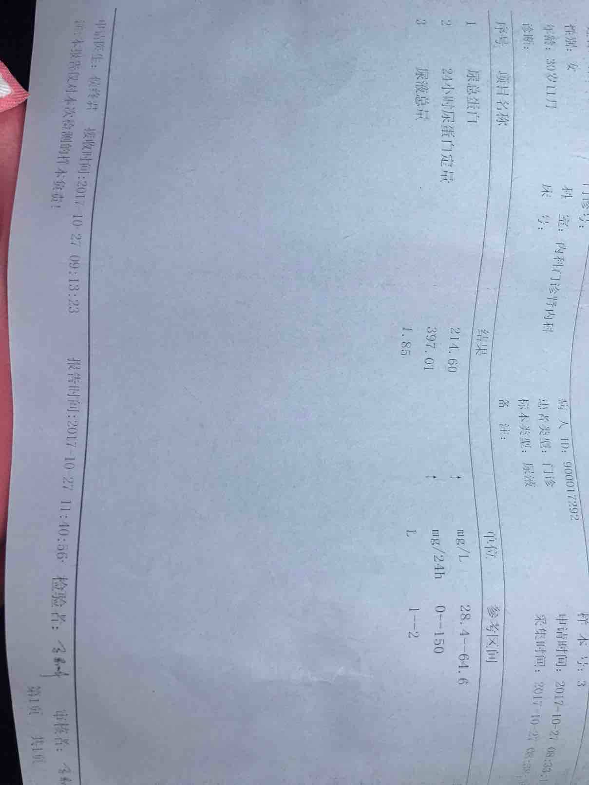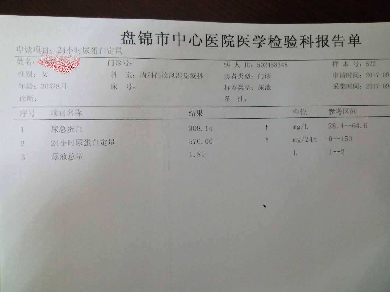28周➕4了,从发现怀孕 尿常规就一个蛋白加号了,四个月之前24小时尿蛋白定量都是正常的,应该从五个月的时候开始 24小时尿蛋白定量不正常的,不过还好还好,第一次不正常的时候是570毫克,第二次是517毫克,第三次是388毫克,今天验的是397毫克,我挺满意的,只要蛋白不往上涨,稳住就好!目前药量和没怀孕之前一样,只要蛋白不涨就不用加药啦!其他检查都挺好的,快7个月啦,竟然一点都不贫血,跟我一直喝生物建补气血的口服液有很大关系,也没有孕反应,能吃能喝的,目前涨了16斤了,现在104斤。