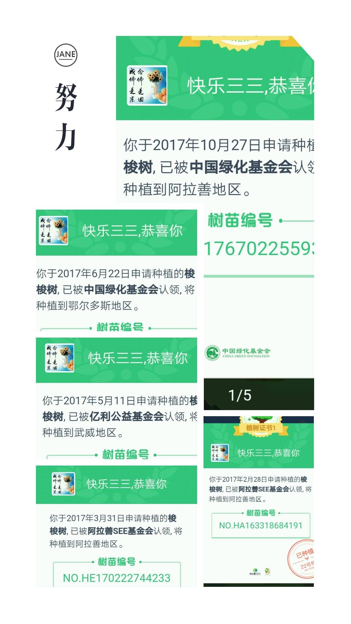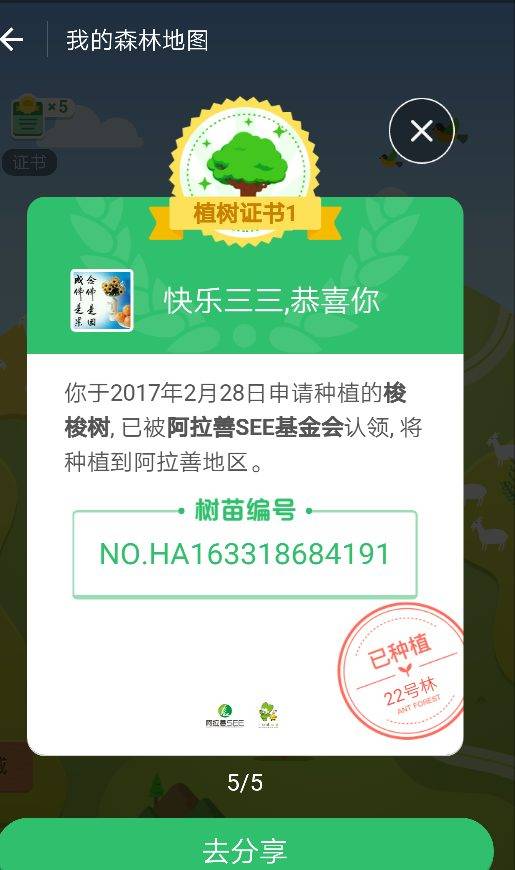 嘿嘿,我也种了5颗树,想在有生之年,有机会去沙漠就是看看。愿望之一。加油。