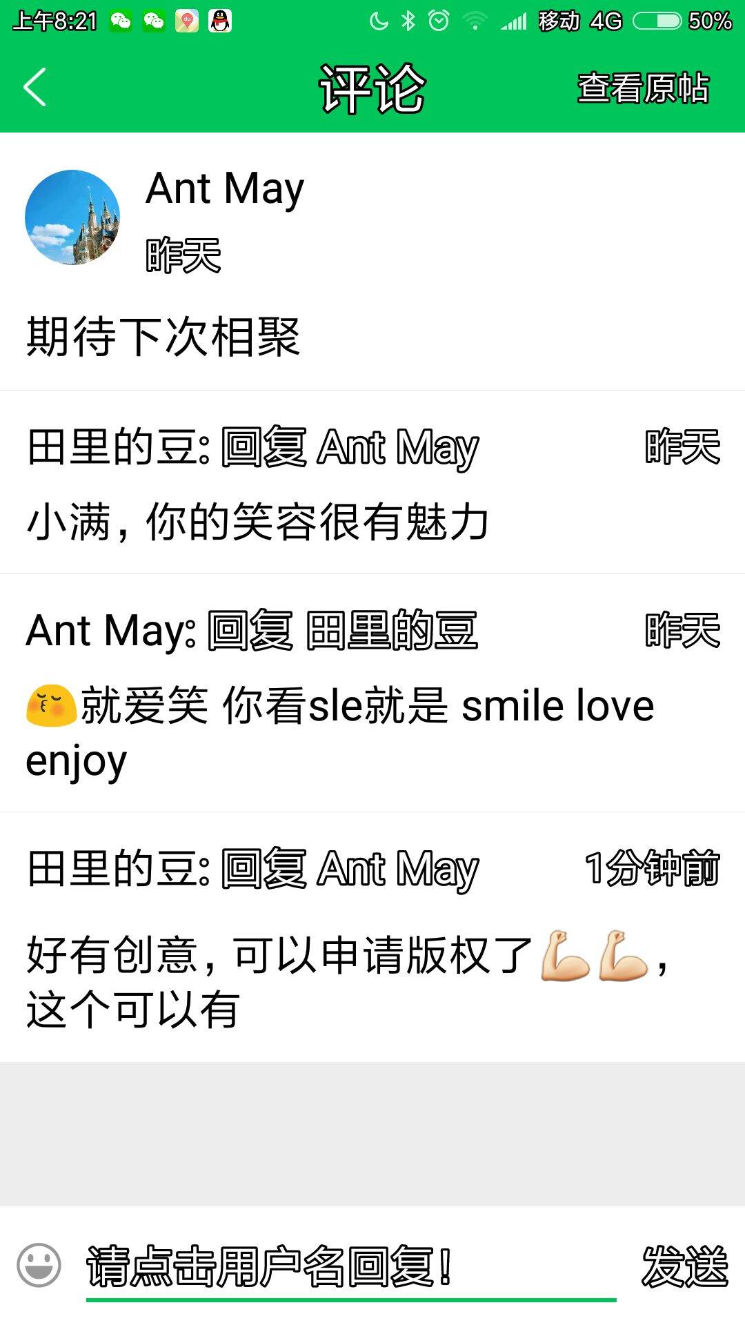 今天早上,照常打开觅健,突然小满的回复印入眼帘,我说她的笑容很甜,她说sle,这不就是smile love enjoy的缩写吗?