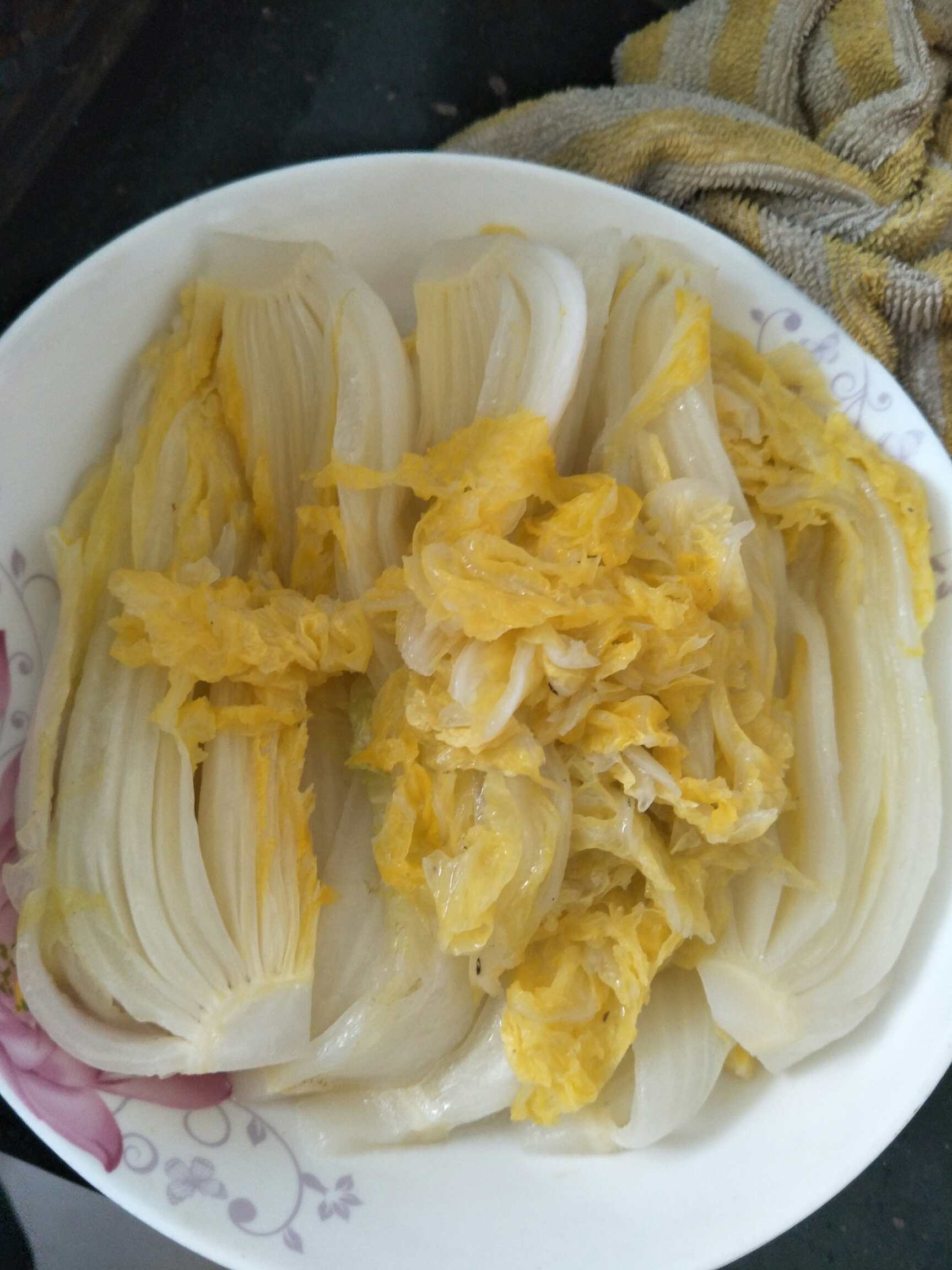 大白菜勒,就切开小瓣的样子,然后煮熟装起来,备用