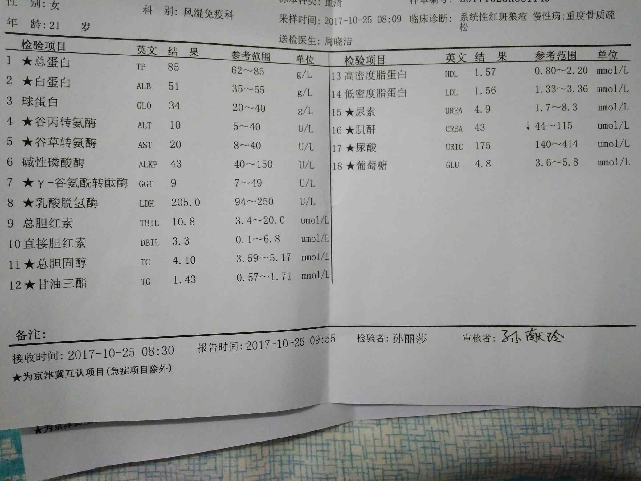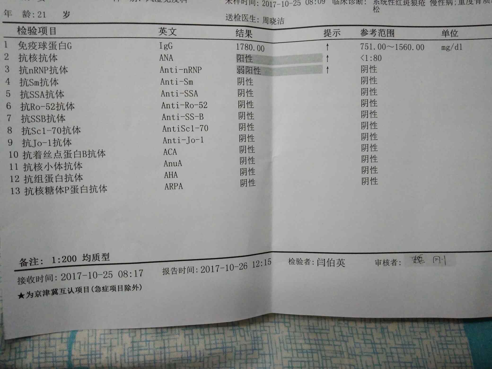 免疫球蛋白这两个月一直在上升,从开始的一千四百多到了今天的一千七百多,医生说可能与我减激素有关。十个月的时间减到了现在的1.5,应该有点快吧。但是我又患有骨头坏死,医生又考虑到激素对骨头的作用,便给我加了一种药,艾拉莫德。这种药太贵了,一盒两百多,心疼死我了,呜呜。先吃一周看看。话说我整天在校也没啥活动量啊,也没有不舒服,就是最近耳鸣的症状又加剧了,难道这是复发的迹象?不要啊。我还要去北京工作呢,是互联网电话销售,唉,愁啊。别复发啊