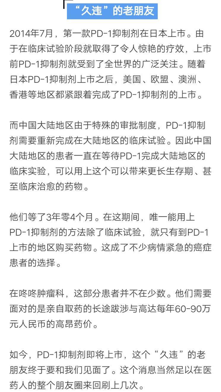 感谢楼主给大家带来振奋人心的好消息,也希望中国与世界同步,让正在病痛的患者少受点罪,延长他们的寿命让我们好有更长的时间为他们尽孝爱我们的《父母》