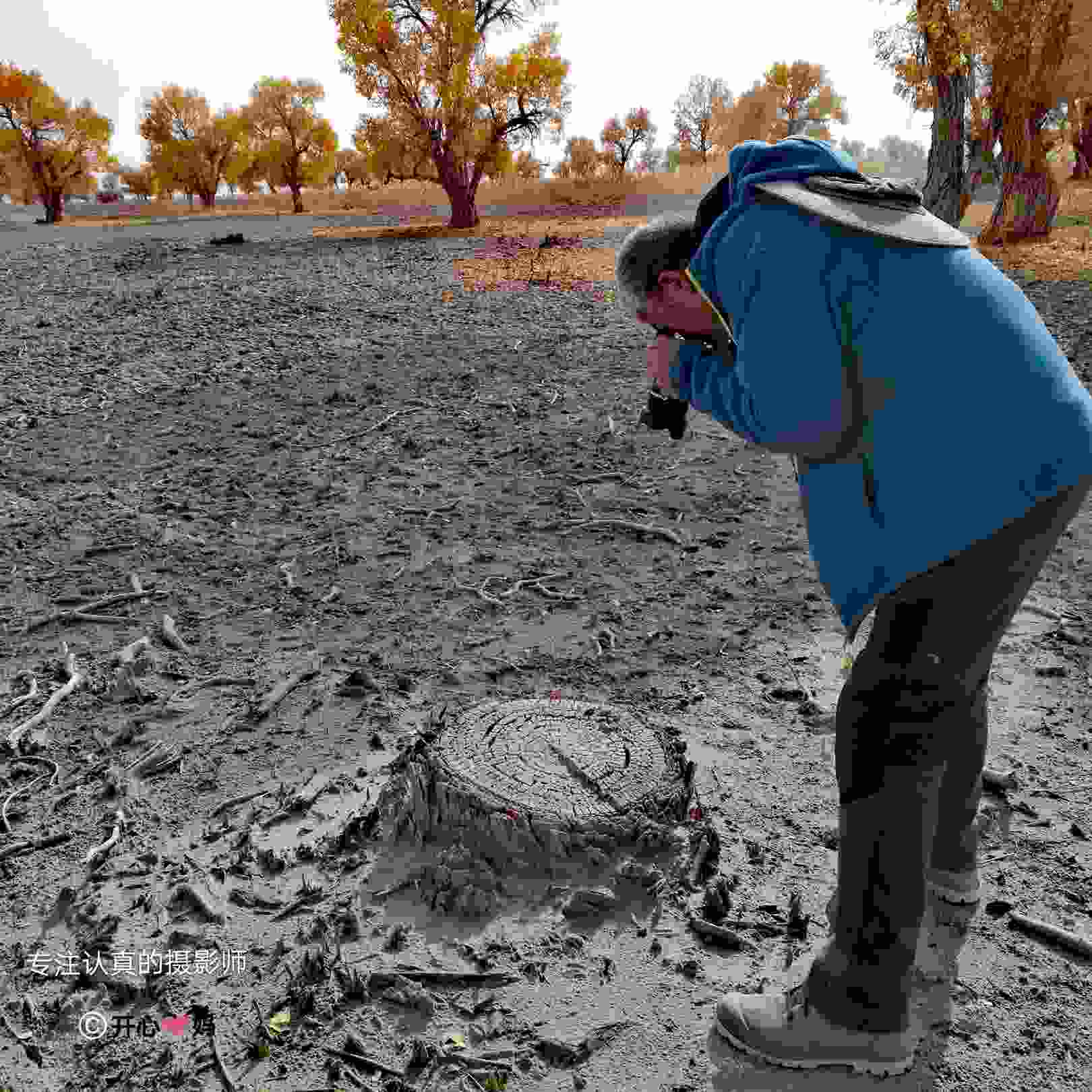 (分享2017.11.5在尉犁县三十三团用手机自拍的片段,跟我一起快乐行走……,图5,一位64岁快乐认真专注的老人马哈哈,驴友随行的摄影师,这次出行貌似报了一个老年团,俺在里面已算年轻人了,努力,生活,不会放弃任何人)