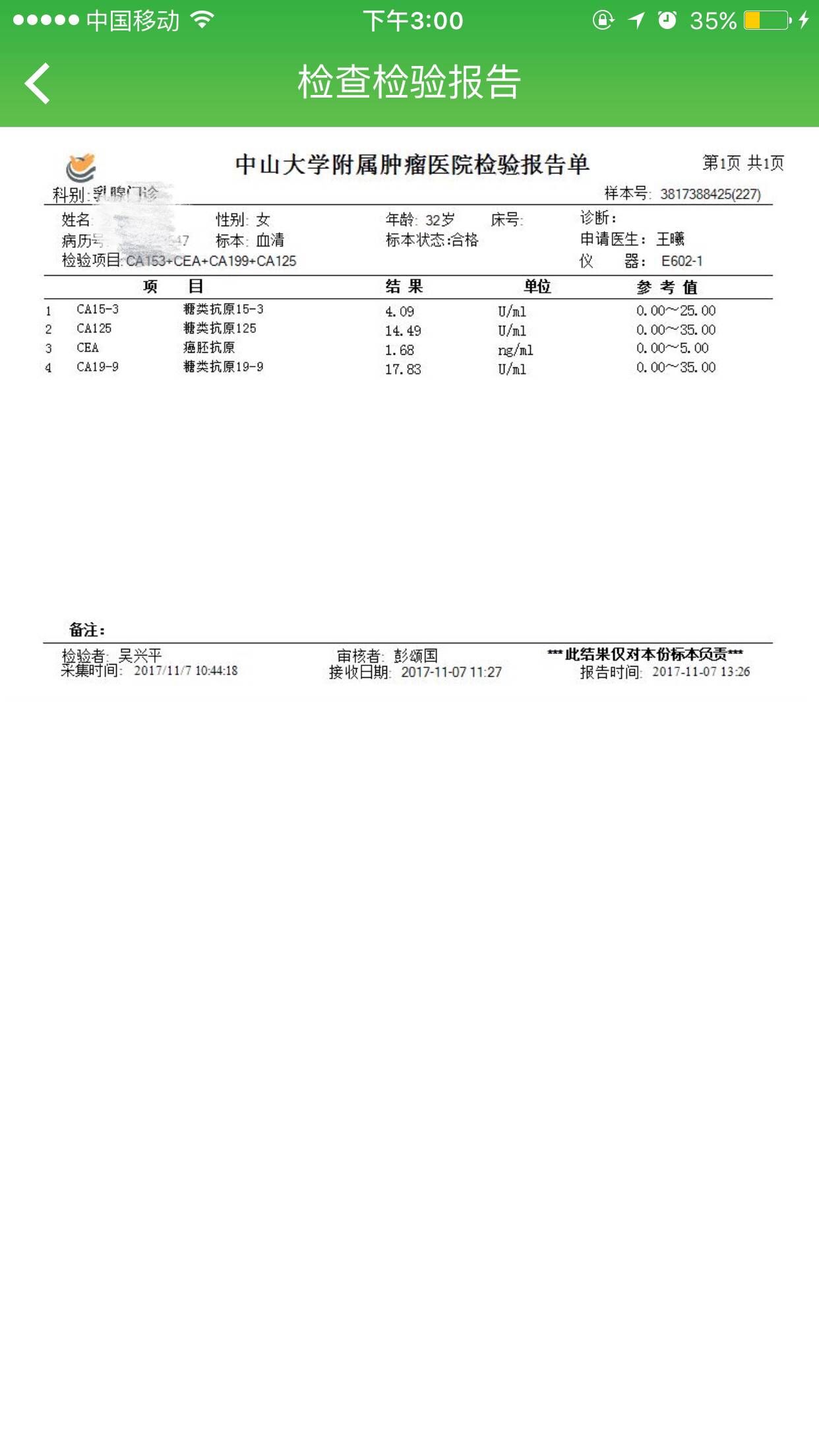 ,肿瘤标志物第一次复查比术前指标下降,第二次复查比第一次复查下降,肿块疤痕也在慢慢长好,比第一次复查缩小了,应该是好事,还有个X光报告没有拿,后天才能拿,祈祷没有问题,心里的石头放下了大半,姐妹们一起加油吧