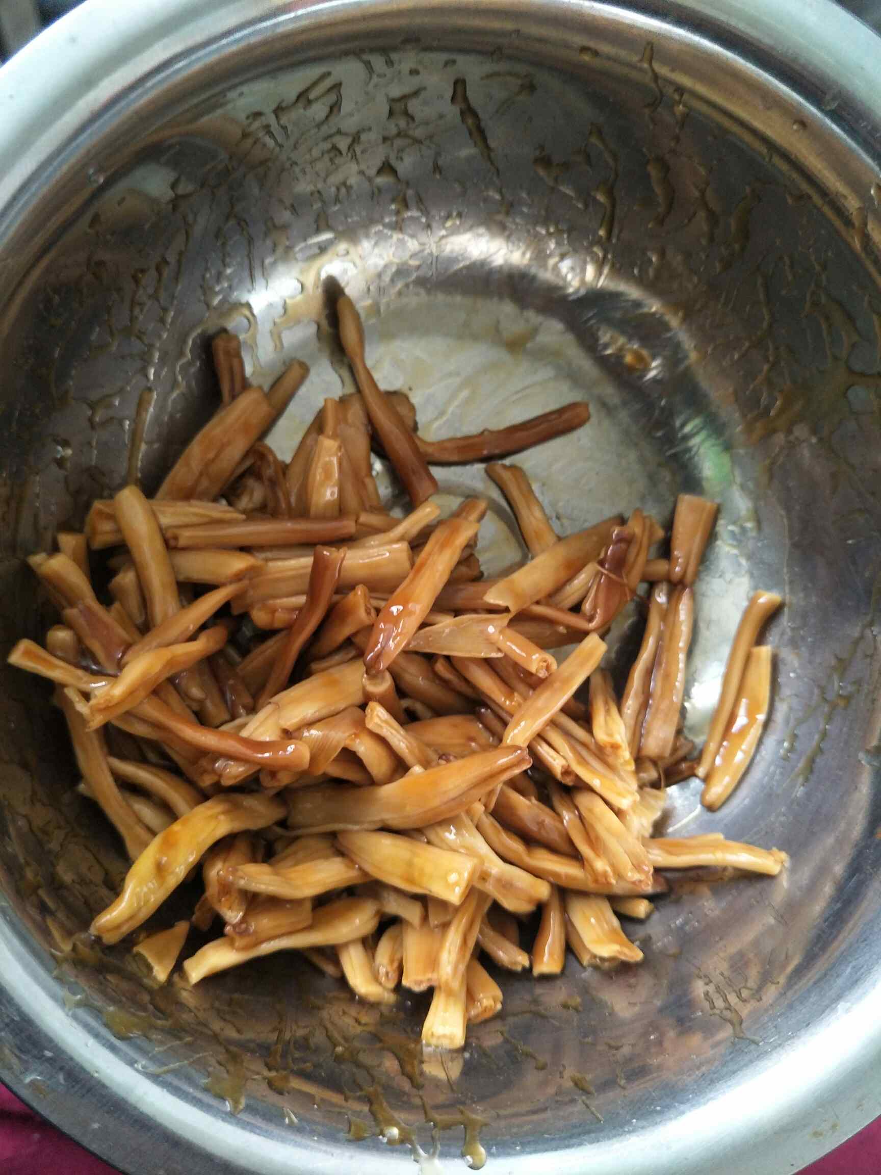 黄花菜 泡了剪段待用,然后用蚝油混一下,备用!!