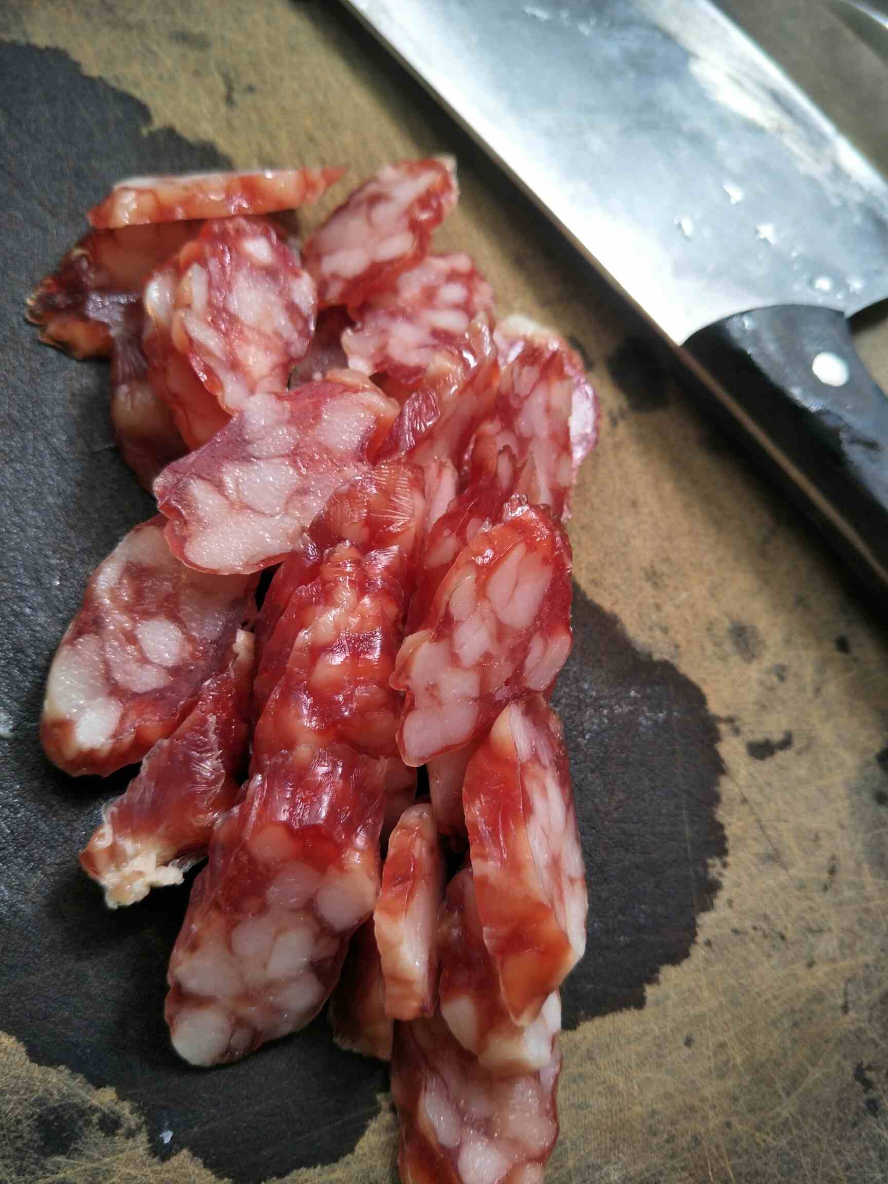 腊肠 两条切片待用