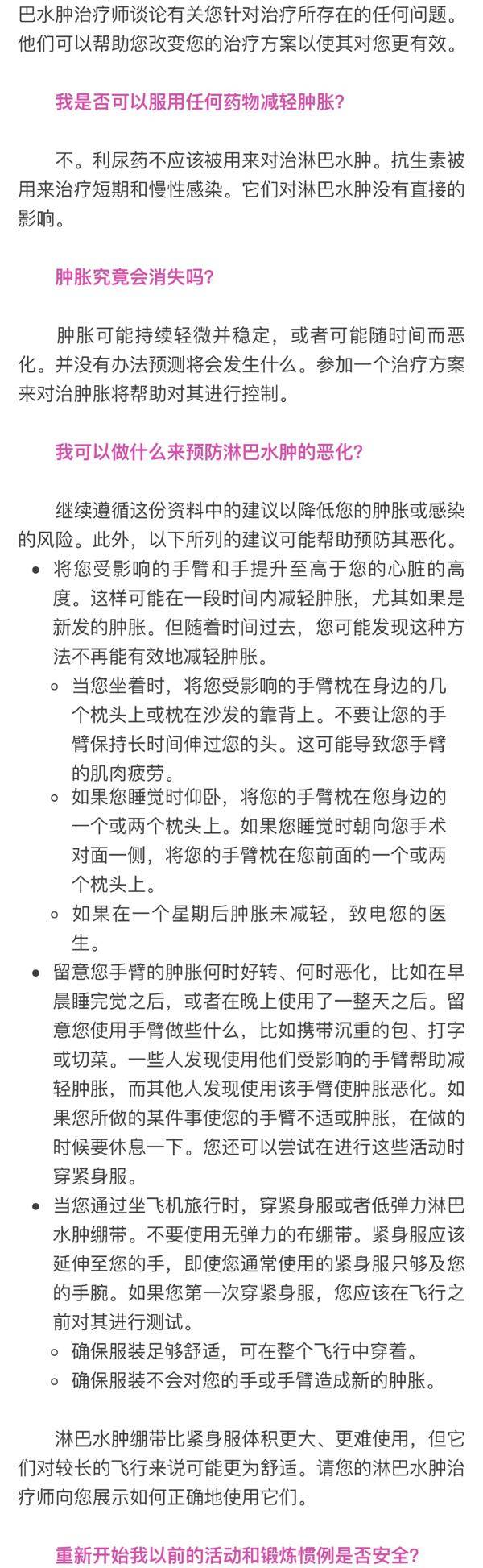 美国纽约纪念医院 斯隆凯特林癌症中心就淋巴水肿常见问题的汇总解答