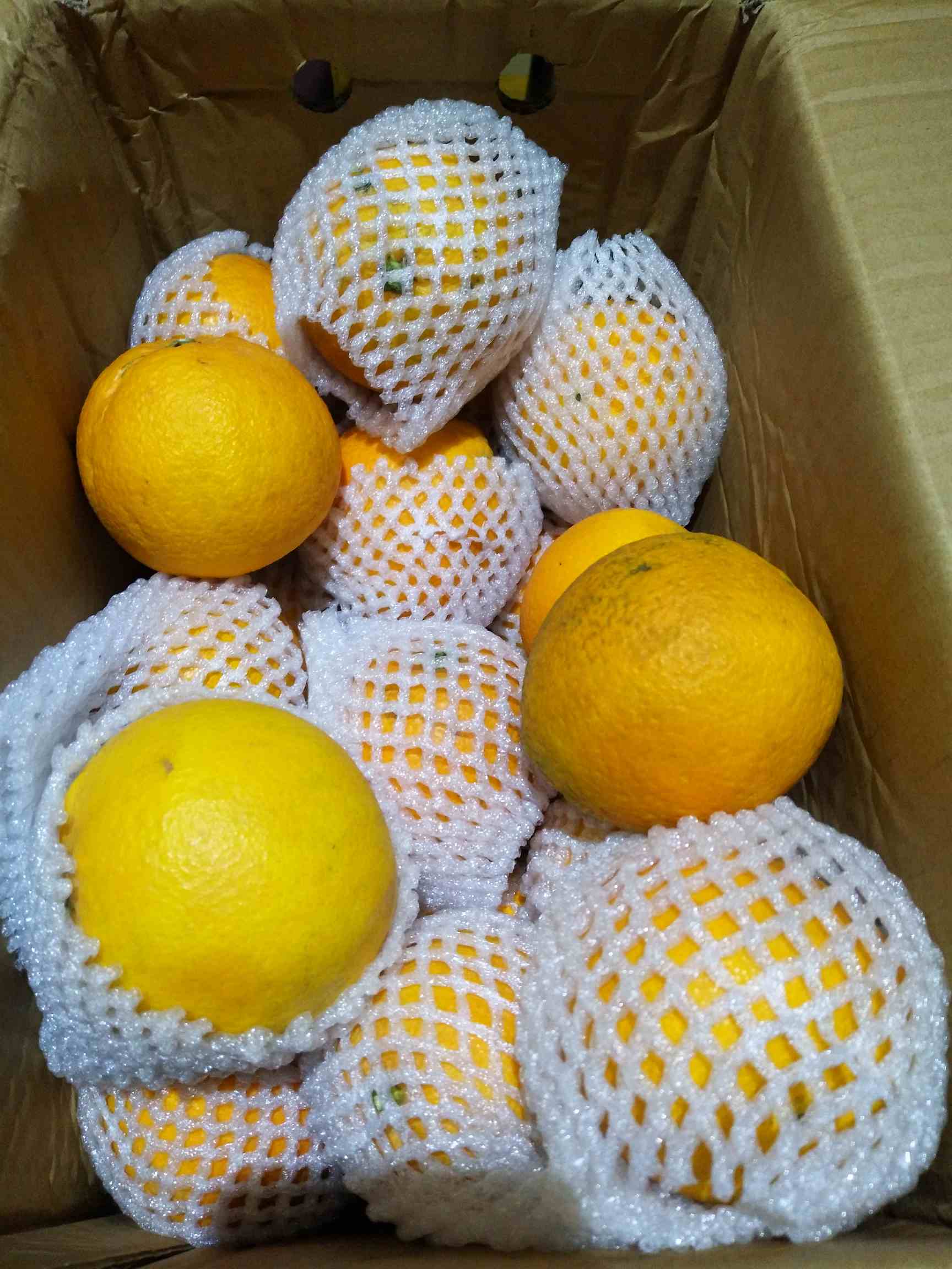 复查回来,橙子也到了,五斤装有16个都是大果,八斤装没数有多少个,但八斤装的橙子比五斤装的果大,刚刚开吃了一个,皮薄汁多,酸酸甜甜的,好吃😌